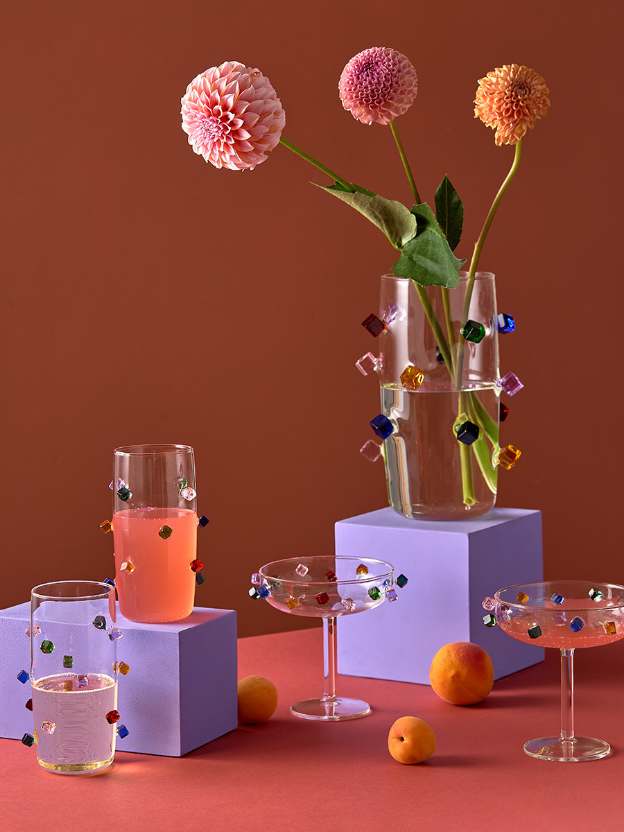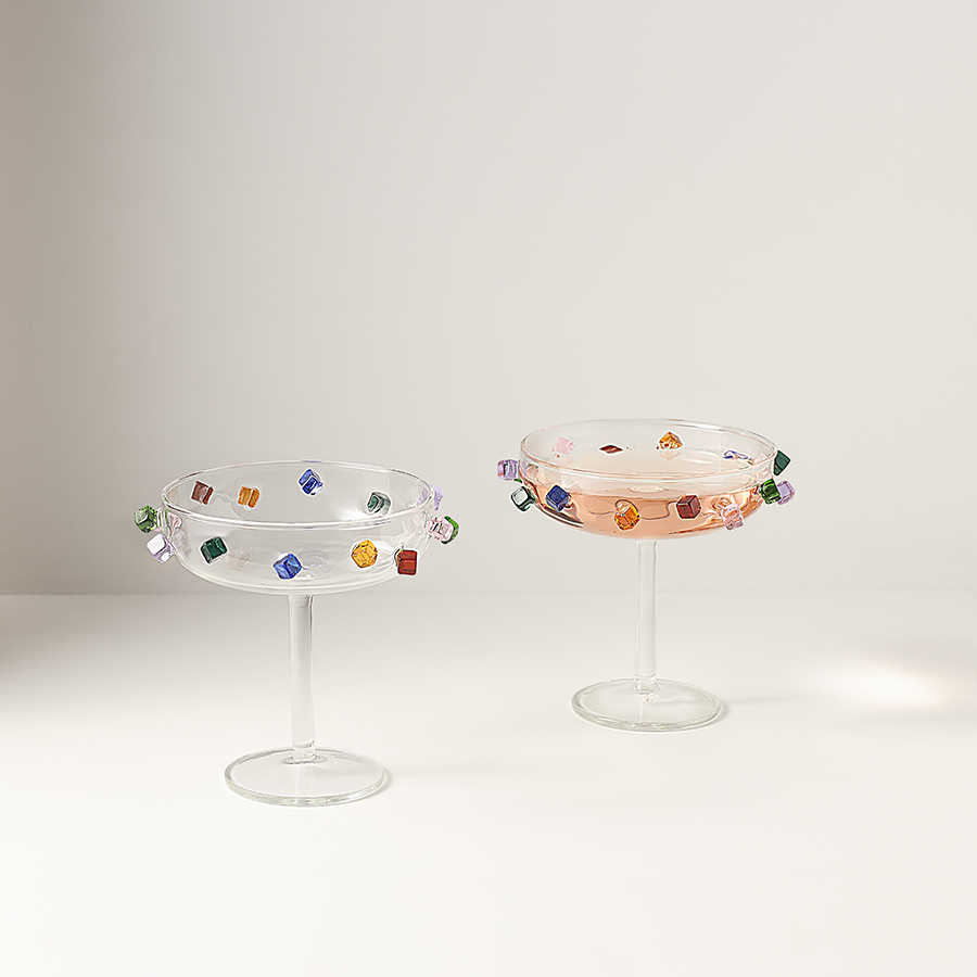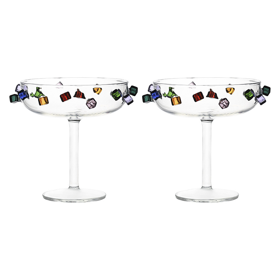 Набор креманок Fiesta станет настоящей находкой для тех, кто любит необычные предметы сервировки. Такая посуда идеально подходит для подачи игристых вин и десертов. Набор привлекает внимание интересным дизайном – стенки креманок украшает объемный декор в виде разноцветных кубиков.