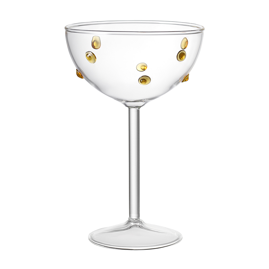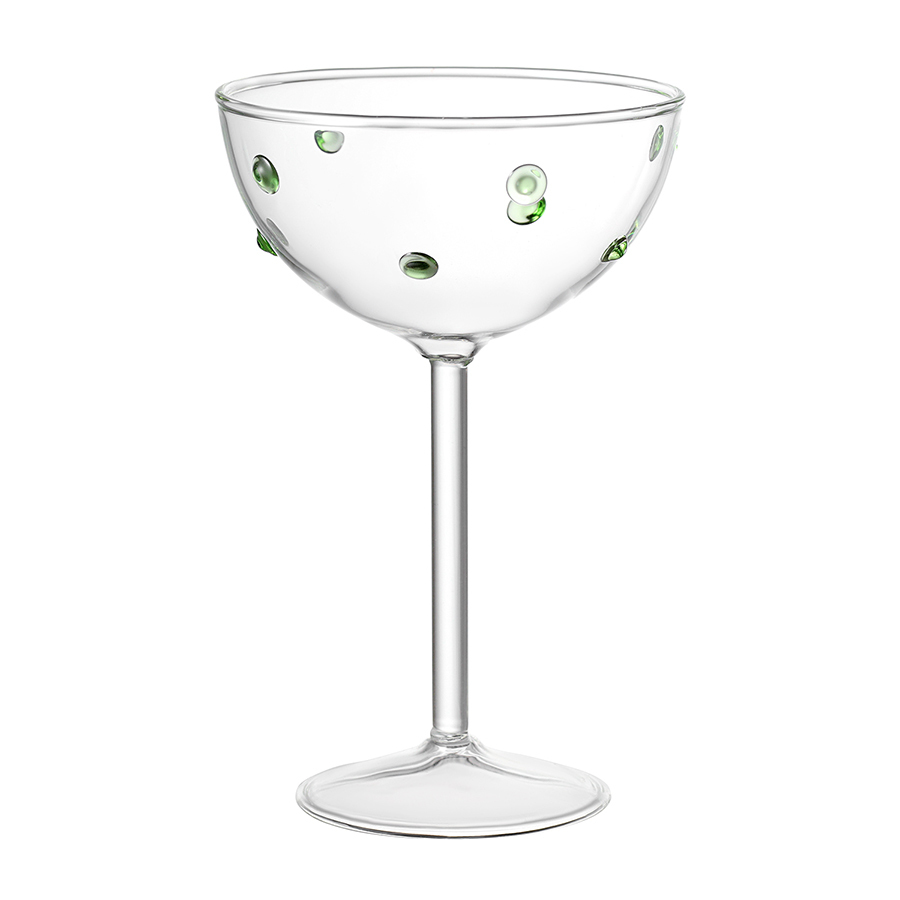 Набор креманок Pom-pon станет прекрасным приобретением для тех, кто любит необычные предметы сервировки. Такой вид посуды идеально подходит для подачи игристых вин и десертов. Коллекция привлекает внимание интересным дизайном – стенки бокалов, стаканов и креманок украшает объемный декор в виде застывших цветных капель.
