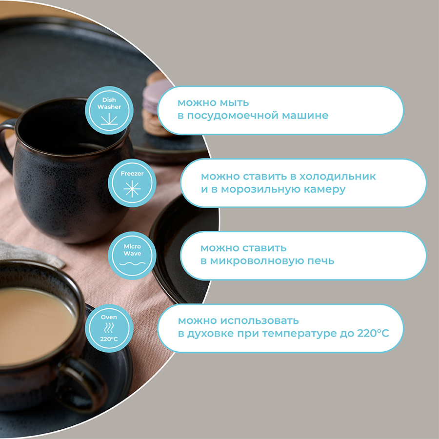 Кружки из коллекции Cosmic Kitchen станут неотъемлемой частью уютного чаепития. Внешние и внутренние поверхности изделий из фарфора покрыты реактивной глазурью, которая создает интересный эффект состаривания. Дизайн особенно понравится поклонникам таких уютных стилевых направлений, как кантри, сканди, эко, эклектика. Материал изготовления неприхотлив в уходе, не впитывает загрязнения, является экологичным и безопасным для здоровья. Кружка большого объема позволяет в полной мере насладиться любимым напитком. Набор идеально подходит как для повседневной, так и для праздничной сервировки стола.