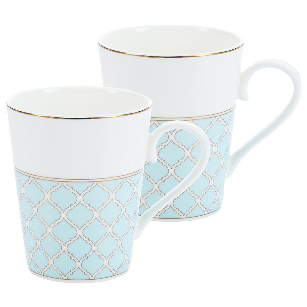 Набор кружек Gipfel Aurora 42868: кружка 400 мл 2 шт. из костяного фарфора белого цвета с ажурным голубым узором в золоте.