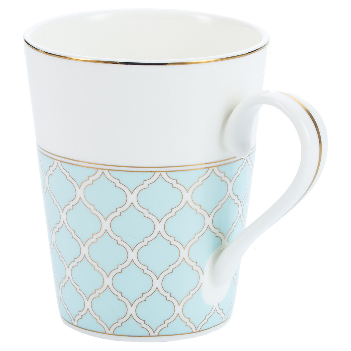 Фарфоровая посуда – это, прежде всего, эстетическое наслаждение. Ее гладкая поверхность и стильный дизайн создают великолепное визуальное впечатление. Каждая деталь фарфоровой кружки Gipfel Aurora тщательно продумана, чтобы подчеркнуть изысканность сервировки. Кружка Gipfel Aurora выполнена в современном стиле с налетом винтажности: воздушно-бирюзовая кайма с кружевным орнаментом в золоте.