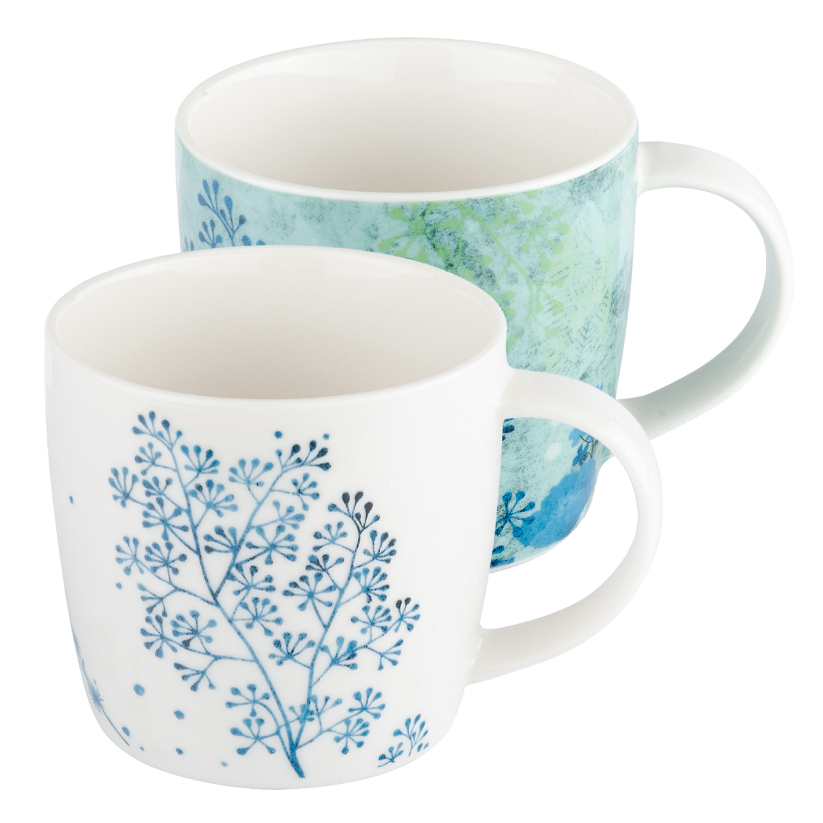 Набор кружек GIPFEL BLUE LAGOON 42247. В наборе 2 кружки объемом 350 мл. Кружки изготовлены из белого фарфора с растительным рисунком синего и бирюзового цвета. Оригинальные кружки выполнены в одной стилистике, но отличаются цветом рисунка. Упакованы в подарочную коробку.