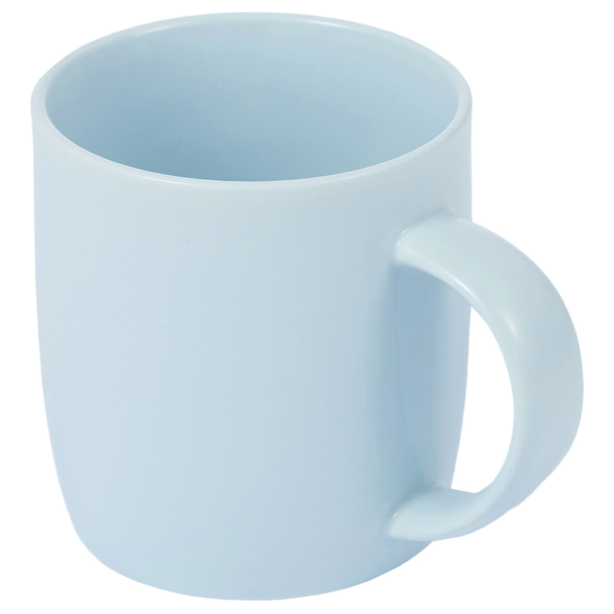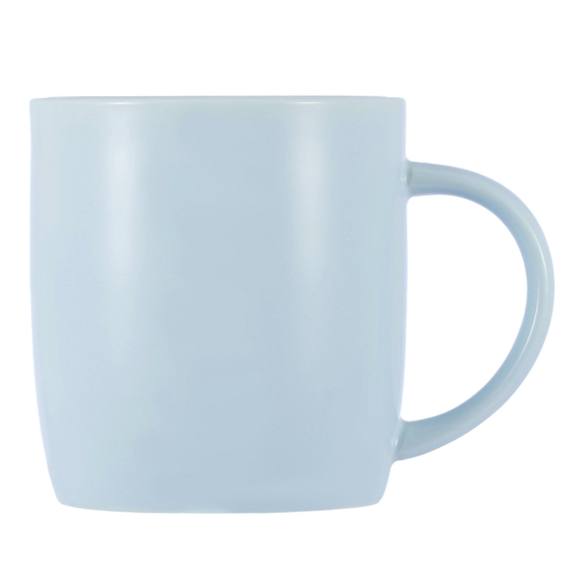 Кружка выполнена в нежном молочно-голубом цвете.