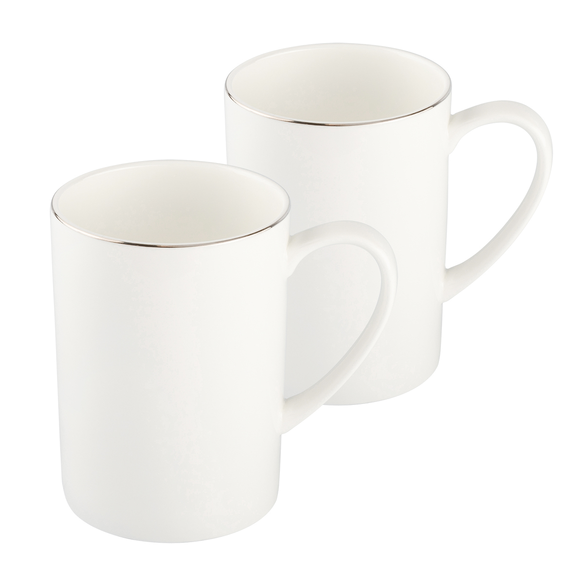 Набор кружек Gipfel PLATINUM 51538. В наборе 2 кружки объемом 450 мл. Кружки изготовлены из костяного фарфора с ободком серебристого цвета по краю. При сервировке сочетаются с другой посудой коллекции PLATINUM.