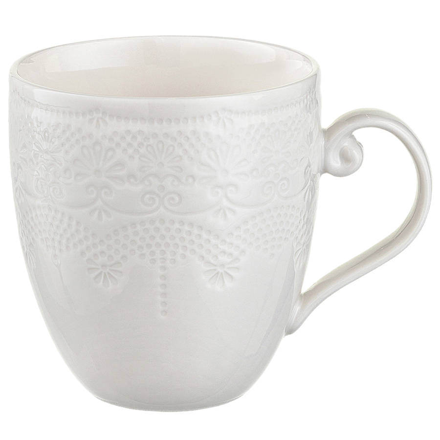 Кружки белого цвета Tracery станут неотъемлемой частью уютного чаепития и стильным дополнением повседневной или праздничной сервировки. Большой объем позволяет в полной мере насладиться любимым напитком. Рельефная поверхность придает емкостям оригинальный вид. Материал изготовления неприхотлив в уходе, не впитывает загрязнения, является экологичным и безопасным для здоровья.