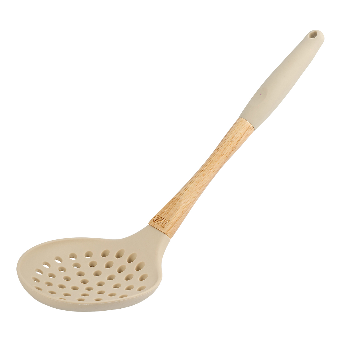 Набор кухонных инструментов Gipfel MOLTO 51661. В наборе 6 предметов: лопатка с прорезями, ложка, половник, шумовка, ложка для спагетти, подставка. Ручки инструментов изготовлены из дерева гевеи. Рабочая часть из силикона, что позволит использовать инструменты с антипригарной посудой.