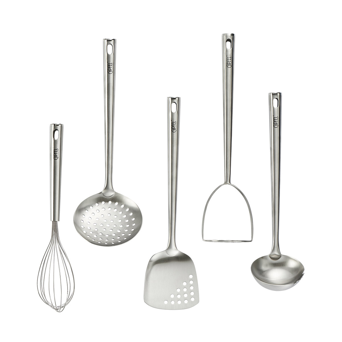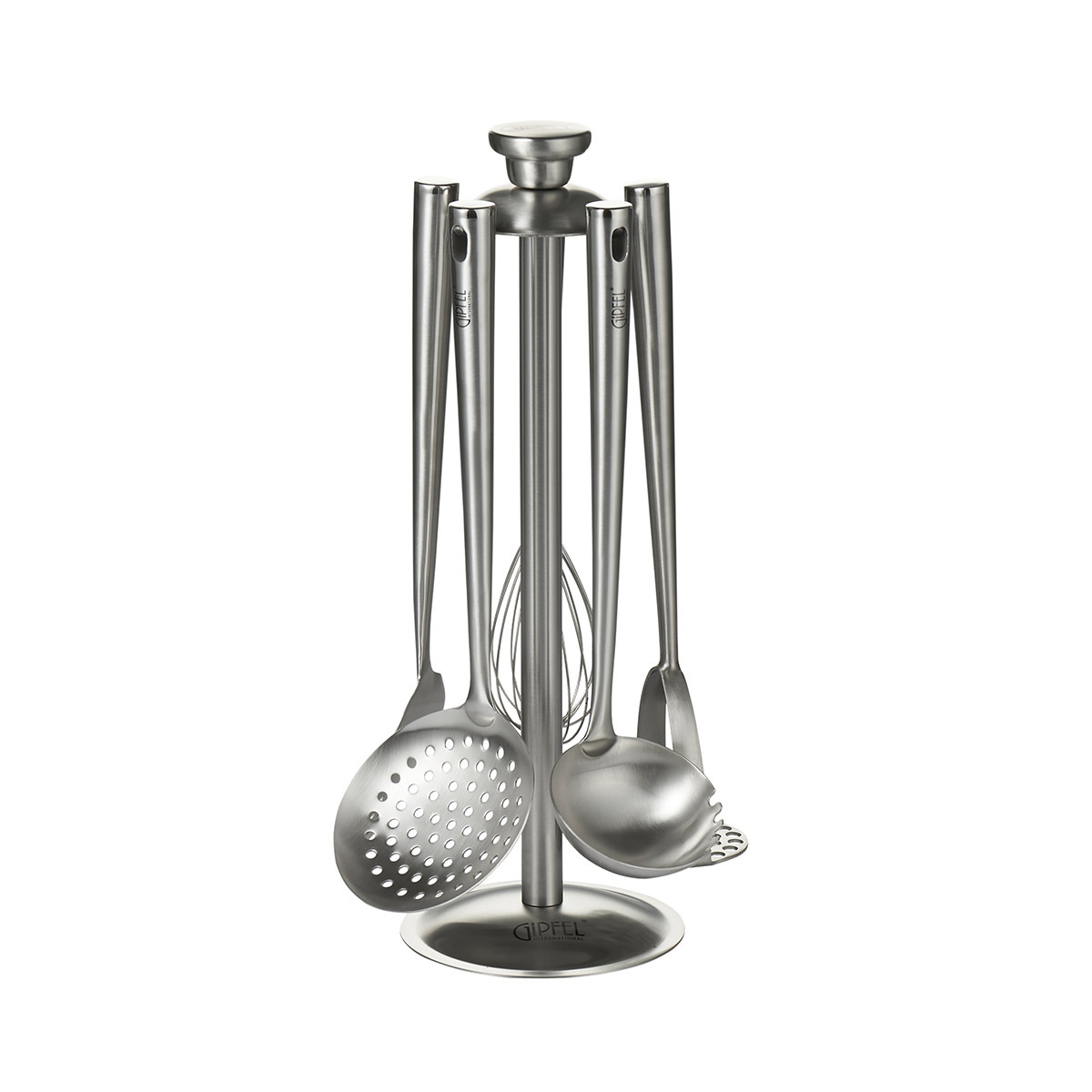 Набор кухонных инструментов MONCLER Gipfel 6074 из 5 предметов на подставке (лопатка, шумовка, венчик, половник, толкушка). Материал: нержавеющая сталь. Длина инструментов - 30 см, подставки - 40 см.
