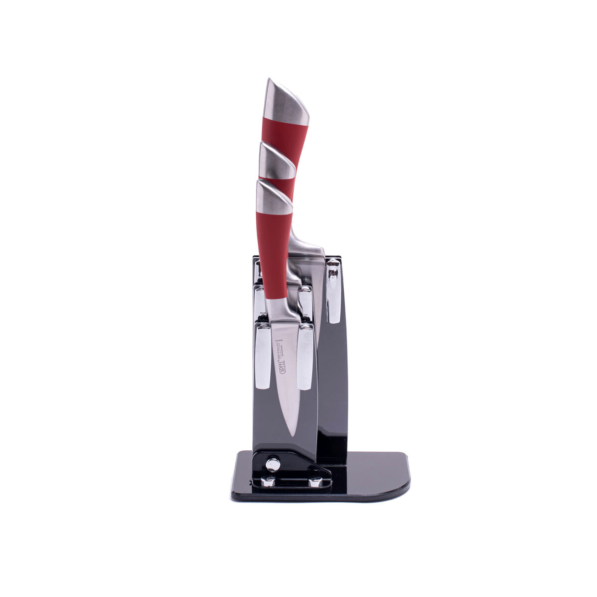 Набор кухонных ножей Gipfel LAURITO 6987. Набор из 3 ножей на акриловой подставке. Материал лезвия: нержавеющая сталь 3CR13. Материал ручек: нержавеющая сталь, термопластичная резина.