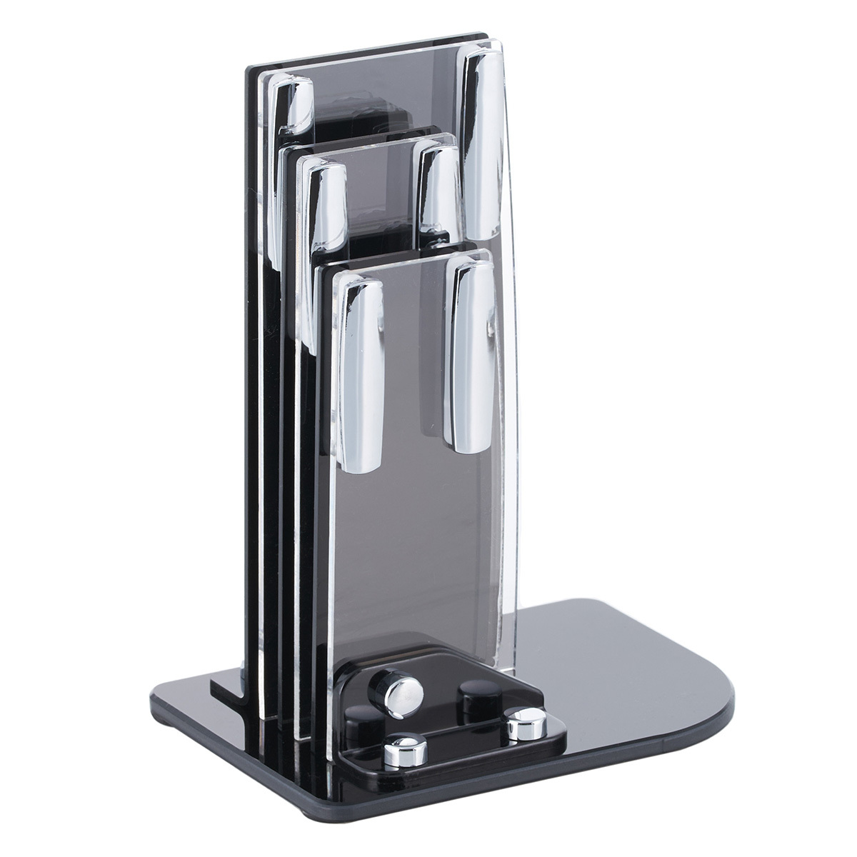 Ножи в стильной подставке из акрила в эргономичном дизайне. Подставка складывается в виде веера.