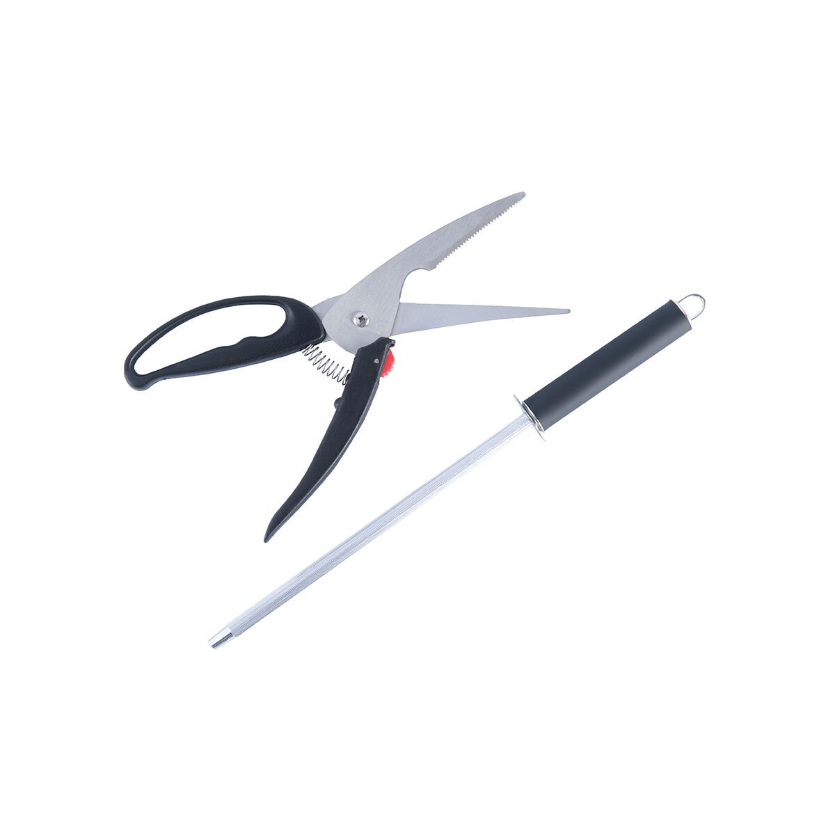 Кроме того, у вас будут специальные кухонные ножницы и точилка.
