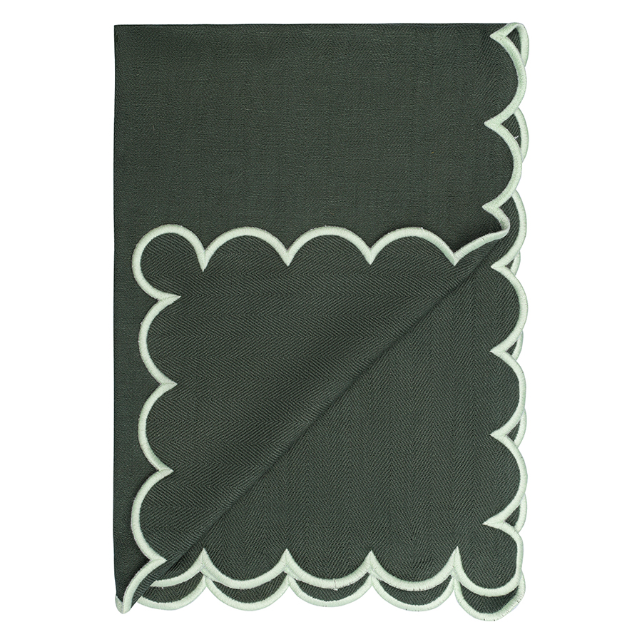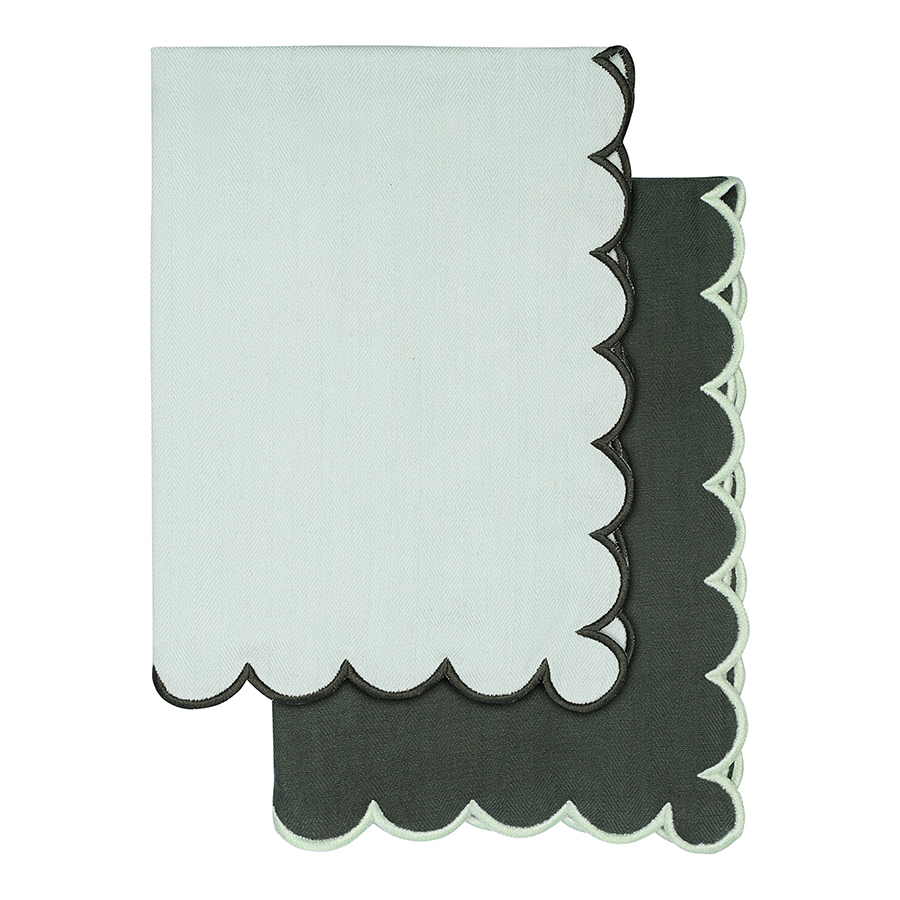Набор кухонных полотенец с контрастным кантом зеленого цвета из коллекции Trendy Ruffles идеально подойдет для повседневных задач и в качестве стильного акцента. Текстиль с волнистой отделкой, напоминающей изящные раковины морских гребешков, стал ярким элементом стиля Ар Деко – и сейчас возвращается в моду, появляясь в самых актуальных интерьерных решениях.