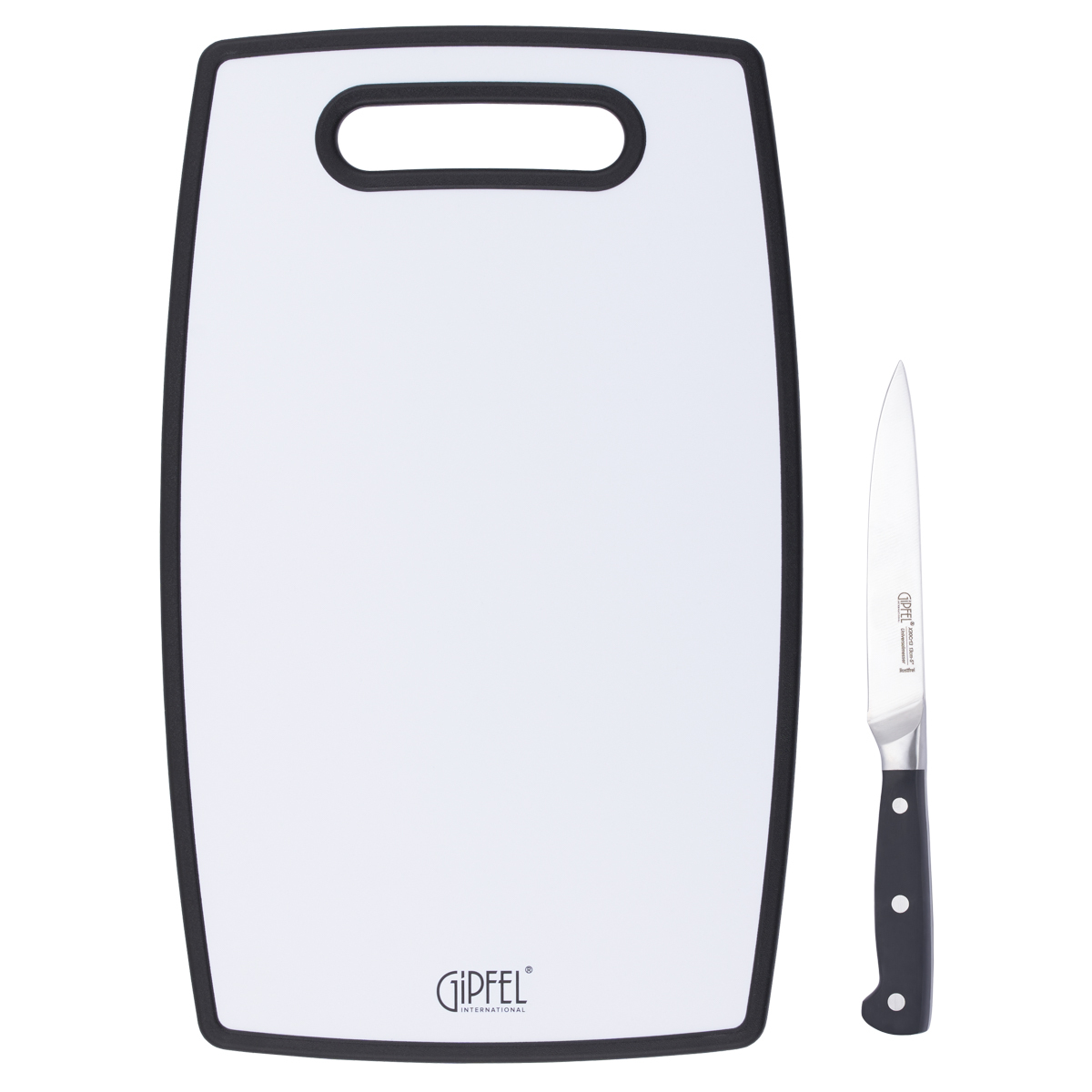 Набор кухонный GIPFEL 51084 из 2 предметов. В наборе: доска разделочная пластиковая белая 23х37см; нож универсальный 13см. Материал лезвия: X30Cr13. Рукоятки ножей сделаны из пластика.