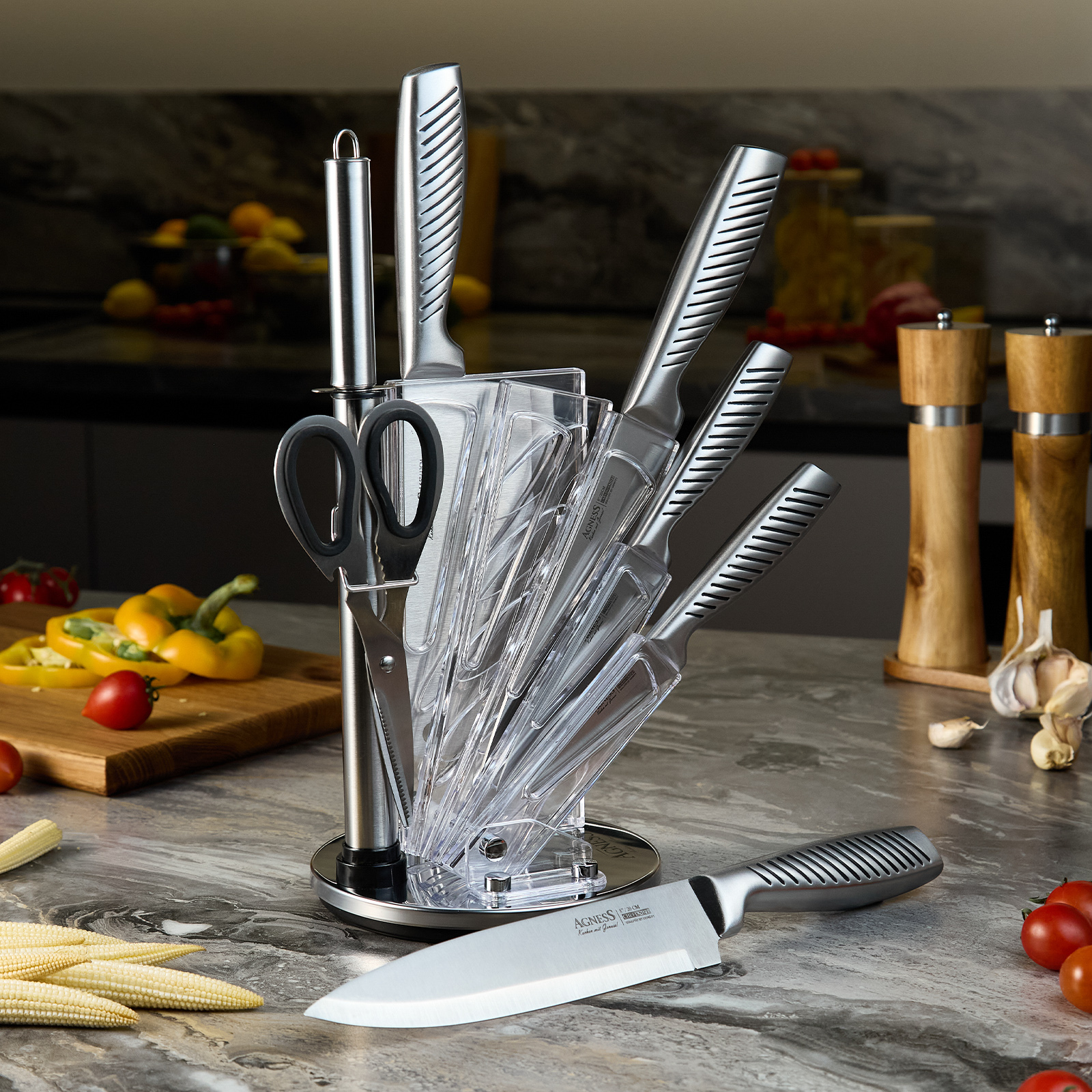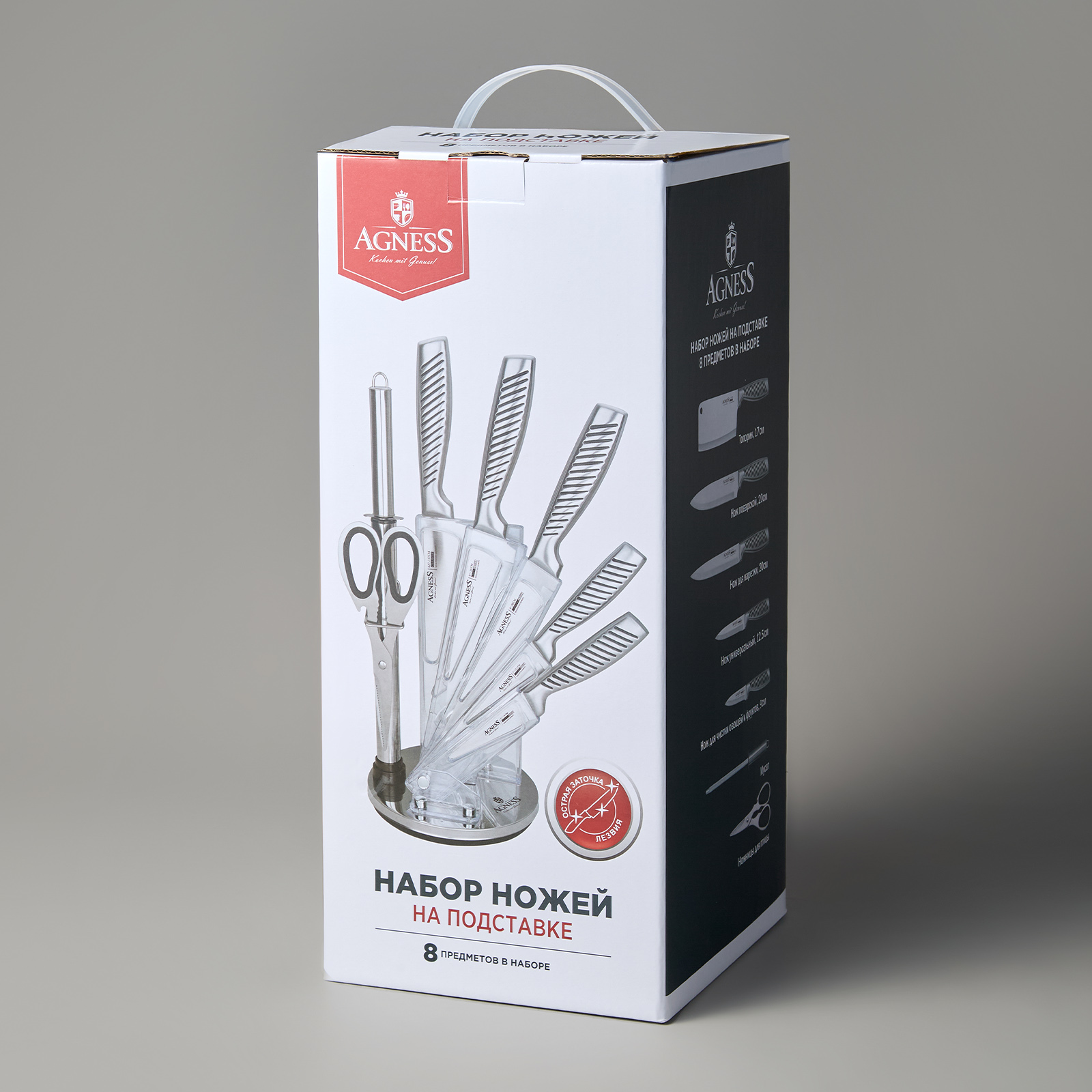Нож - главный инструмент на кухне, а вернее ножи, т.к. даже самый лучший нож не сможет справиться со всем многообразием задач. Выбирая набор ножей AGNESS - Вы приобретаете комплект самых необходимых и чаще всего используемых ножей. Преимущества ножей AGNESS: