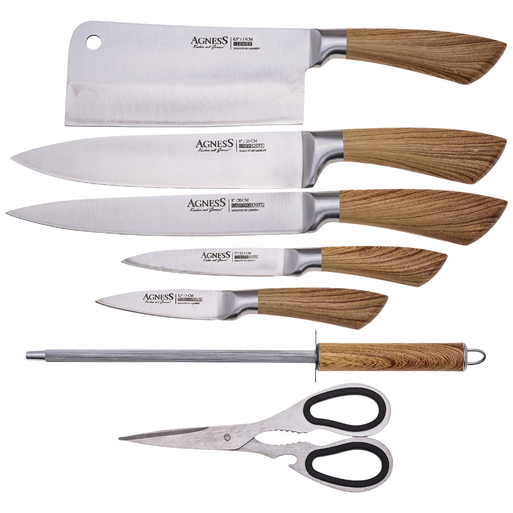 Нож - главный инструмент на кухне, а вернее ножи, т.к. даже самый лучший нож не сможет справиться со всем многообразием задач. Выбирая набор ножей AGNESS - Вы приобретаете комплект самых необходимых и чаще всего используемых ножей. Преимущества ножей AGNESS:
