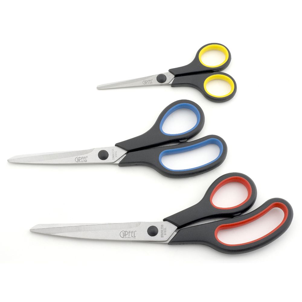 Набор кухонных ножниц Gipfel BLOSSOM 9856. В наборе 3 ножниц размером 14 см, 21,5 см, 25 см. Ножницы сделаны из нержавеющей стали, ручки пластиковые. Разные размеры позволят использовать ножницы для любых нужд в быту.