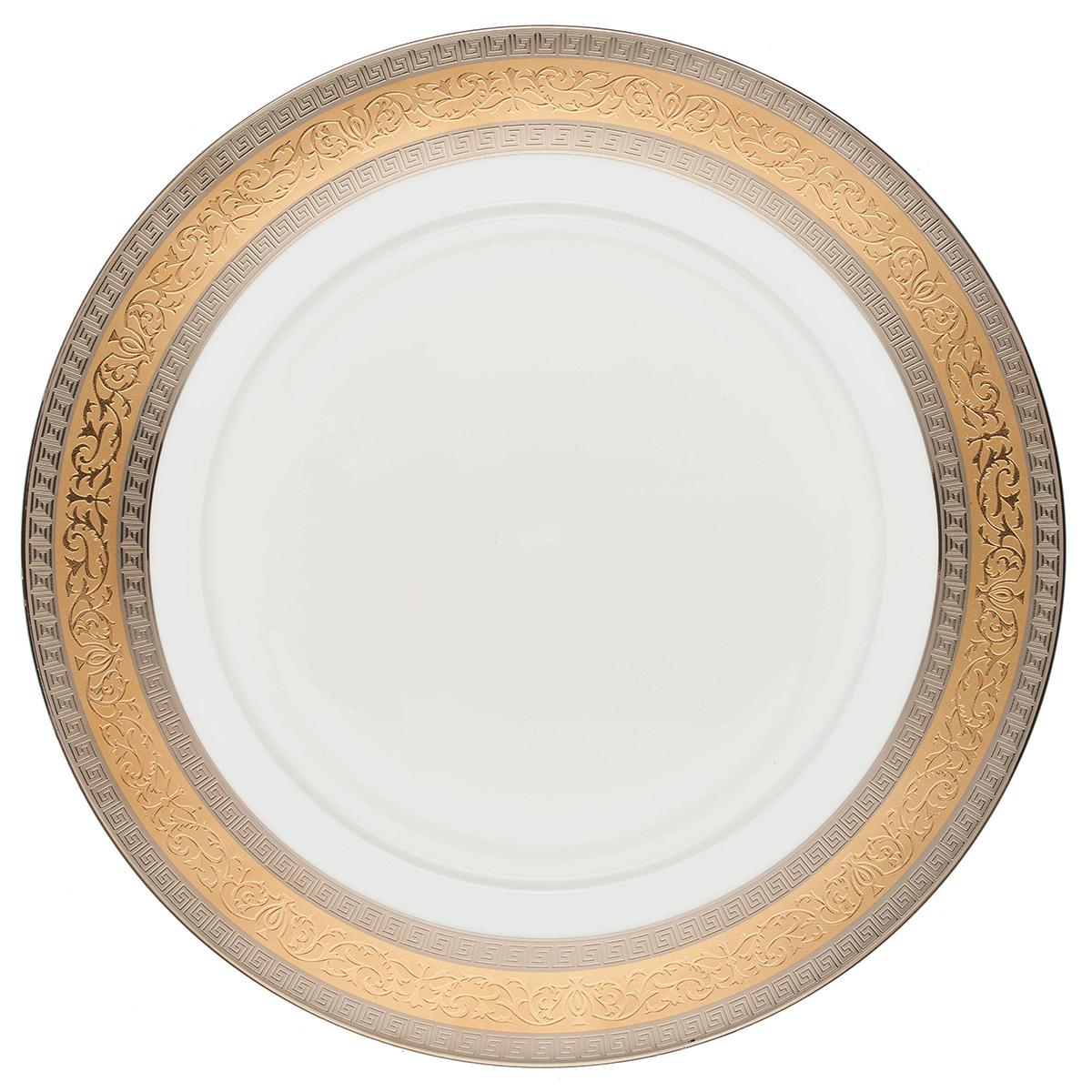 Обеденные тарелки Gipfel Hermes декорированы золотым кантом с изящным растительным орнаментом и меандром в темном серебре.