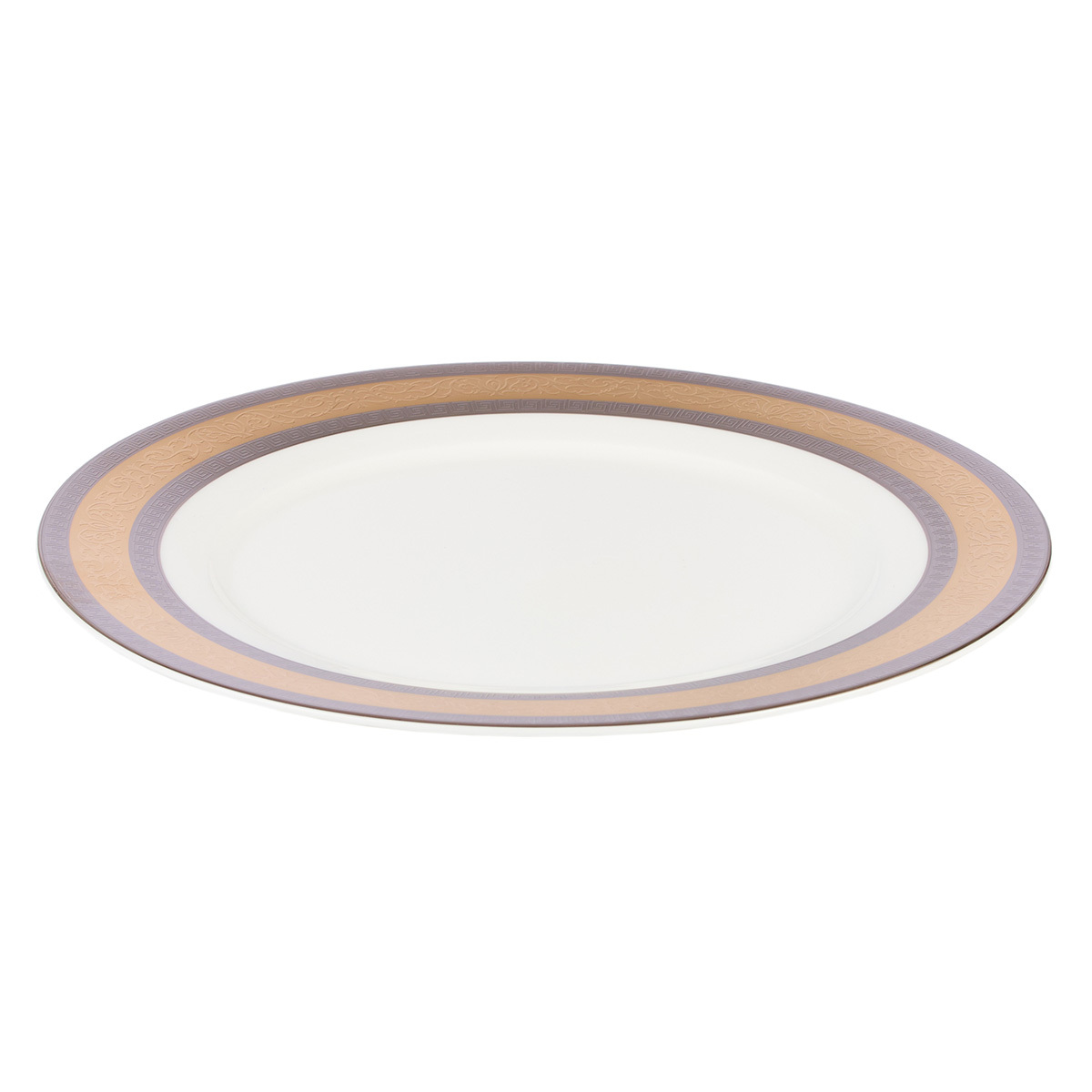 Набор обеденных тарелок Gipfel Hermes 41471. В наборе 2 тарелки из костяного фарфора с золотым и серебряным кантом. Диаметр каждой тарелки - 27 см.