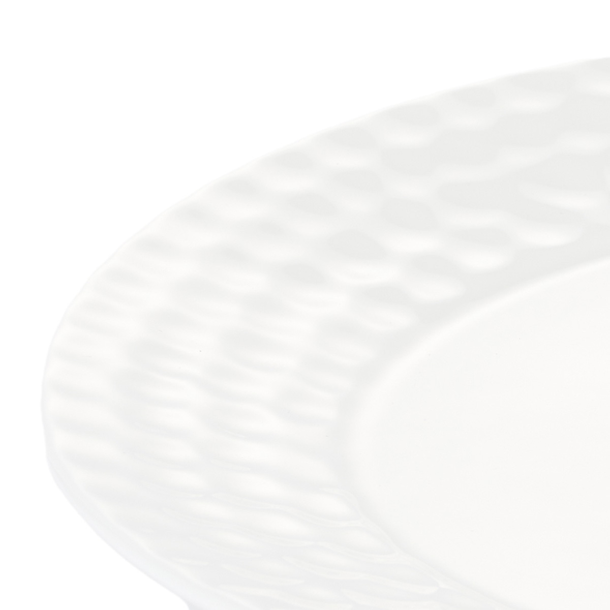Обеденные тарелки Gipfel Marbella декорированы по краям широким кантом с рельефной поверхностью. Такая уникальная текстура придает посуде воздушность и легкость. При ярком свете создается впечатление, что цвет посуды не белый, а перламутровый.