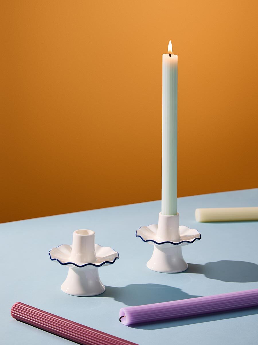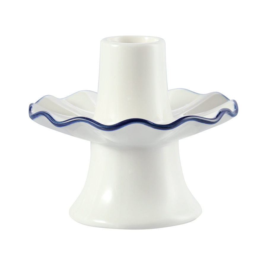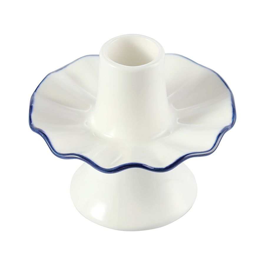- Акцентная голубая кайма придает белоснежным подсвечникам особую элегантность.