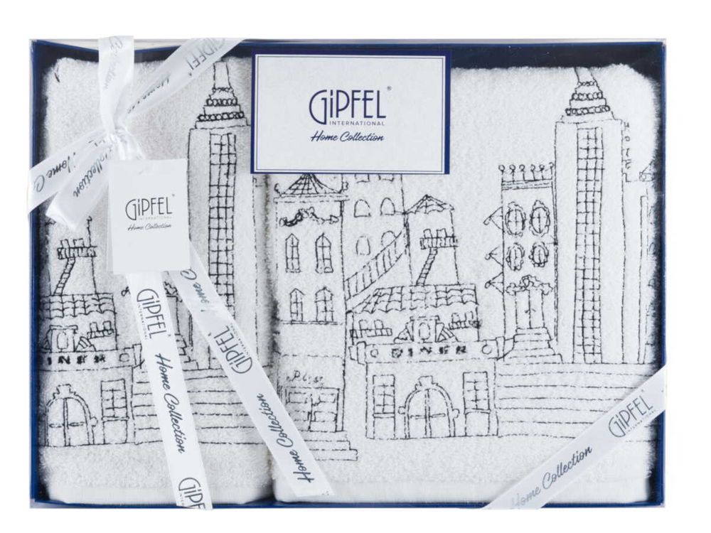 Набор полотенец Gipfel CITY 40766. В наборе 2 полотенца цвета экрю с вышивкой города, упакованные в подарочную коробку. Размеры полотенец 50x100 см, 70х140 см. Полотенца выполнены из 100% хлопка, плотность нити 450 гр/м2. Махровые полотенца невероятно мягкие и сделаны из натурального материала.Разные размеры позволяют использовать полотенца для рук, лица или после душа.