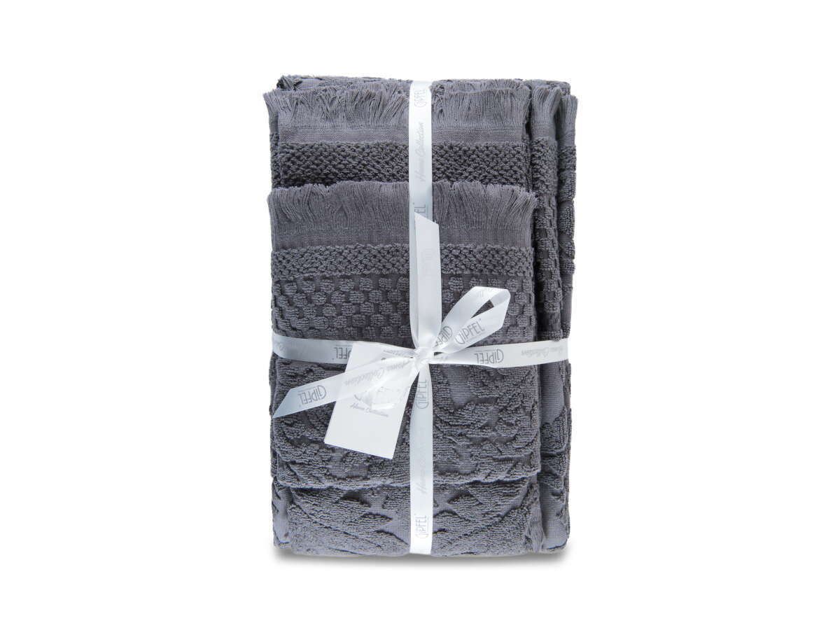 Набор полотенец GIPFEL ORNATO 40550. В наборе 3 полотенца размером 30x50, 50x100 см, 70x140 см. Полотенца сделаны из 100% хлопка и жаккарда, плотность нити 500 гр/м2. Махровые полотенца невероятно мягкие и выполнены из натурального материала серого цвета с рельефным цветочным рисунком. Разные размеры позволяют использовать полотенца для рук, лица или после душа.