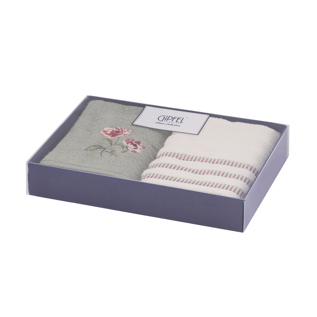Полотенце GIPFEL TAHIYA 40915. В наборе 2 полотенца белого и зеленого цвета с вышивкой, упакованные в подарочную коробку. Размер полотенец 50x100 см. Полотенца выполнены из 100% хлопка, плотность нити 480 гр/м2. Махровые полотенца невероятно мягкие и сделаны из натурального материала. Размер позволяет использовать полотенца не только для лица и рук, но и после душа.