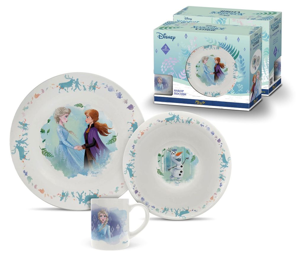 Набор посуды детский Priority КРС-1934 из 3 предметов. Набор фарфоровой детской посуды «Холодное сердце 2» упакован в подарочную коробку. В набор входят тарелка диаметром 19 см, миска диаметром 15,2 см и кружка объемом 240 мл.