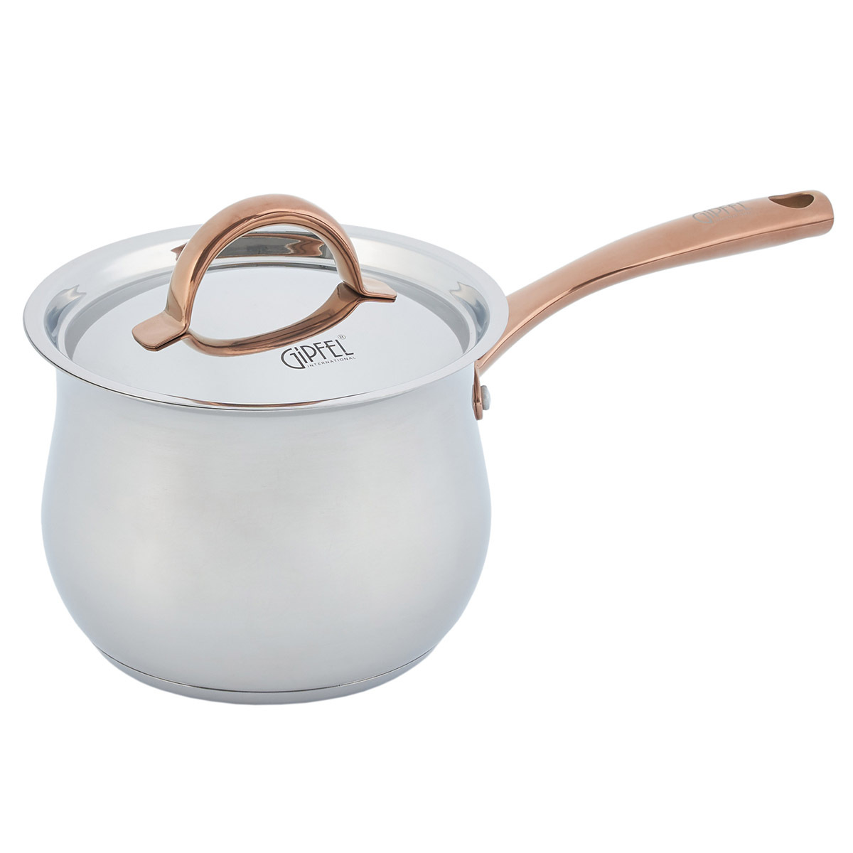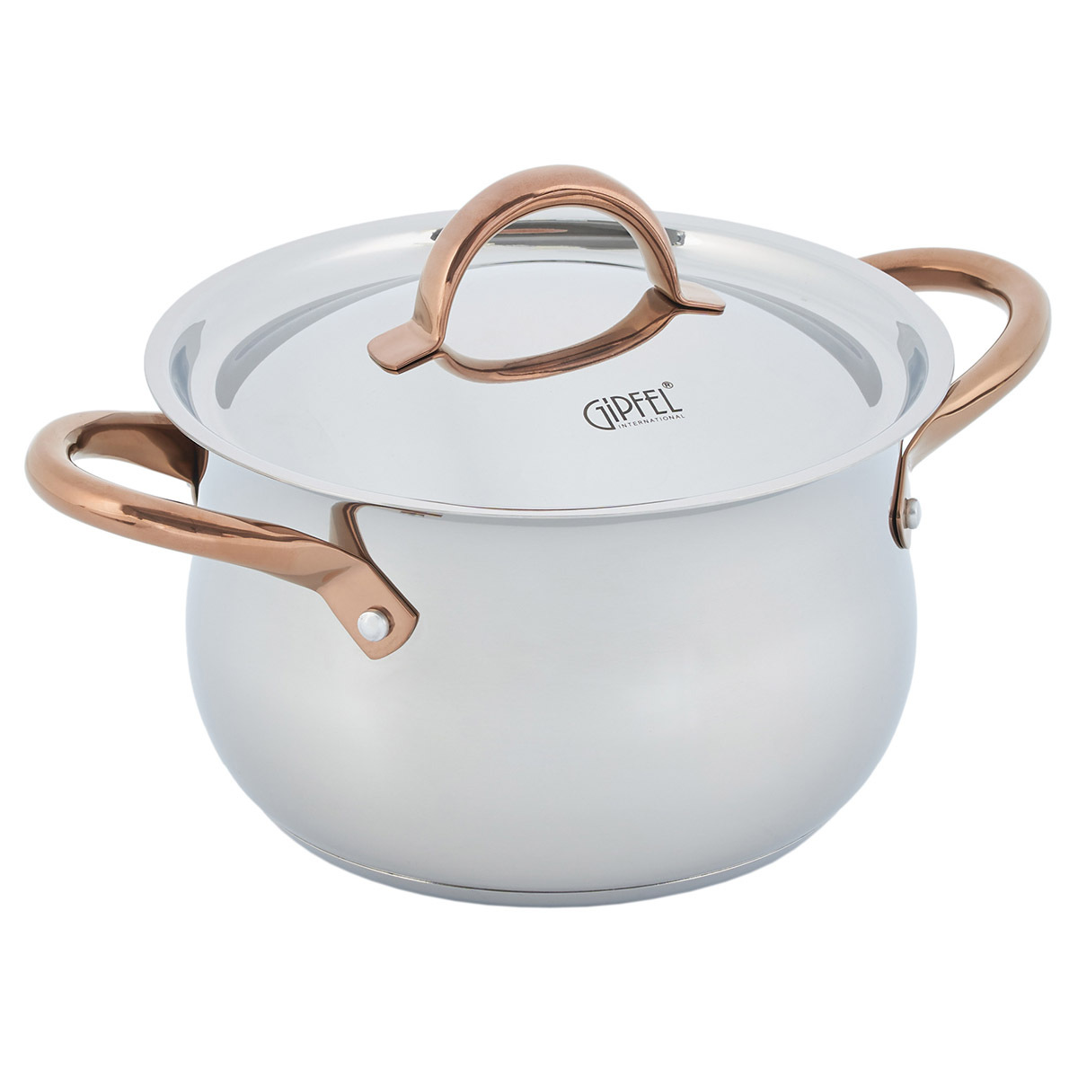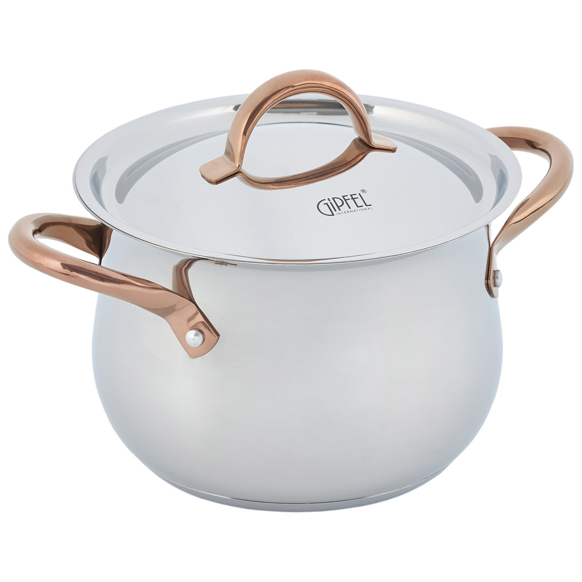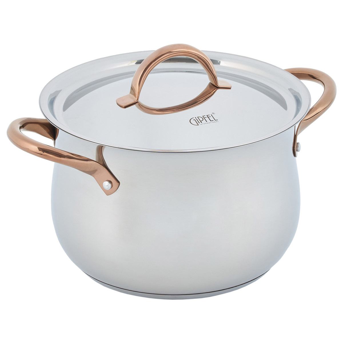 Дизайн посуды разработан с учетом удобства при применении: глянцевая поверхность, плавные линии и изящные ручки с удобным захватом. Все предметы со стальной крышкой. Ручки покрыты отделкой "Розовое золото". Этот изысканный акцент делает Набор посуды из нержавеющей стали Gipfel Absolute 51907 особенным.