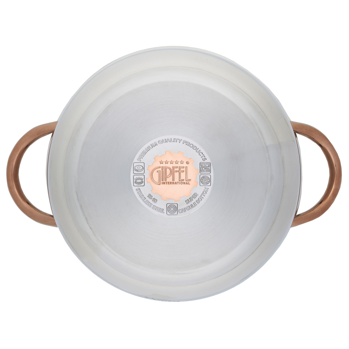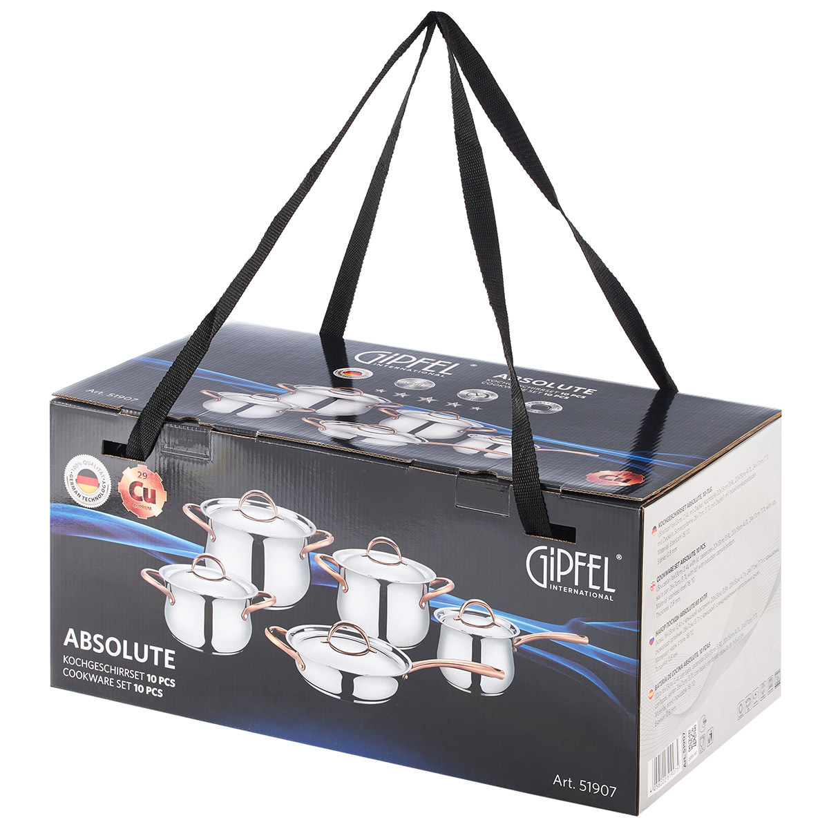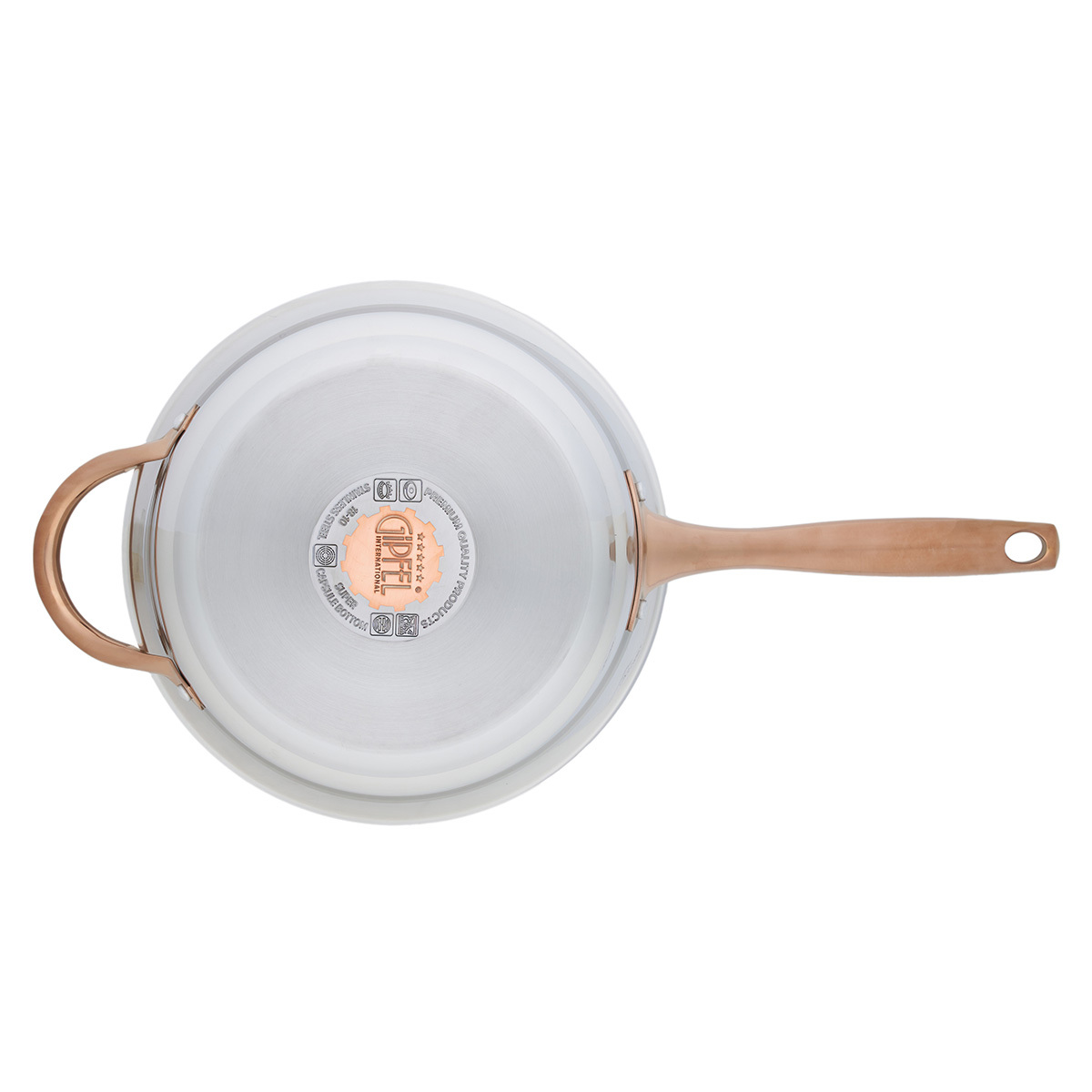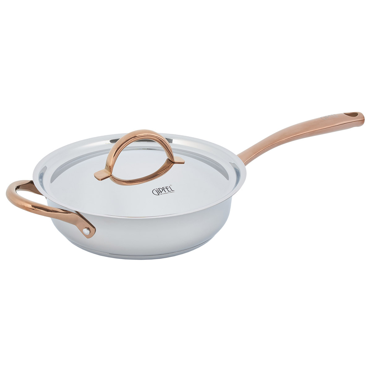 Дизайн посуды разработан с учетом удобства при применении: глянцевая поверхность, плавные линии и изящные ручки с удобным захватом. Все предметы со стальной крышкой. Ручки покрыты отделкой "Розовое золото". Этот изысканный акцент делает Набор посуды из нержавеющей стали Gipfel Absolute 51907 особенным.