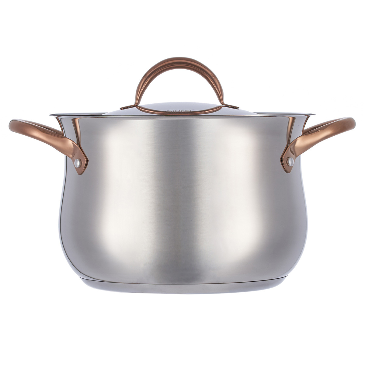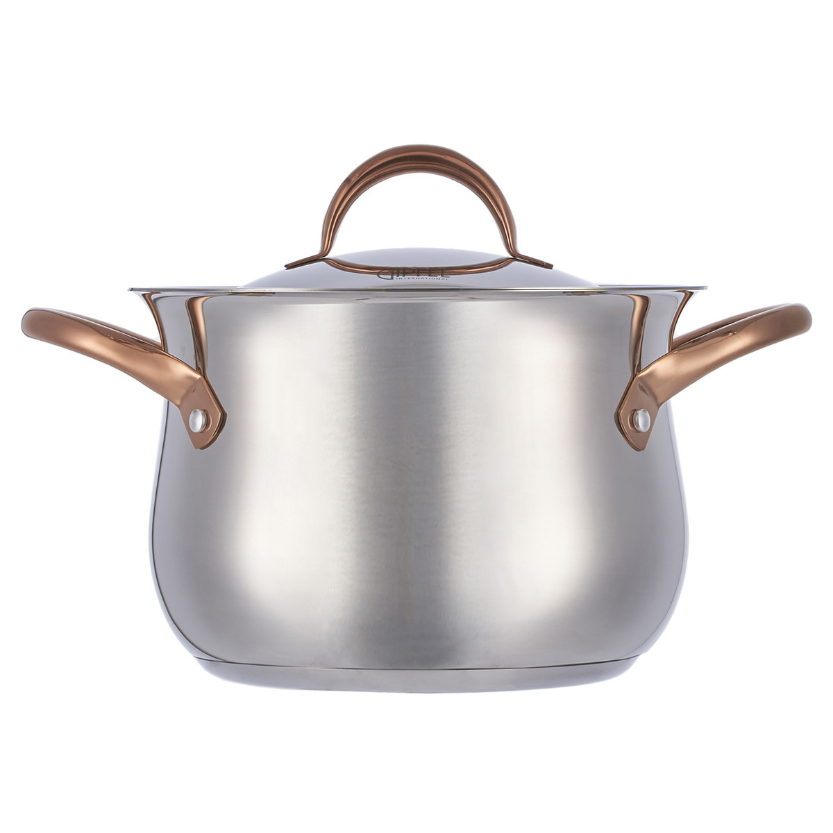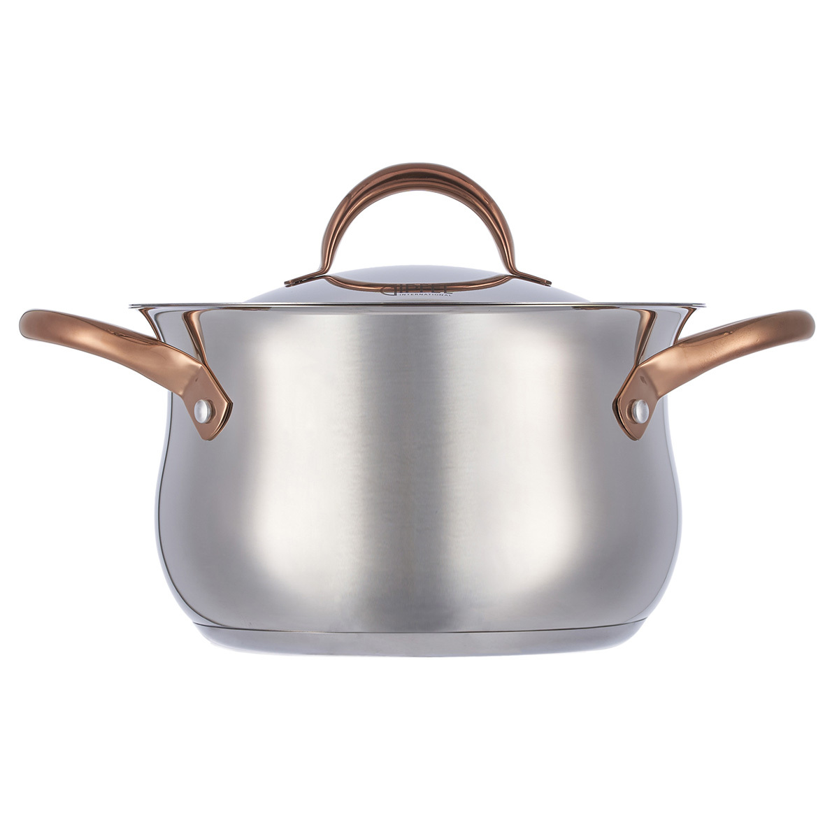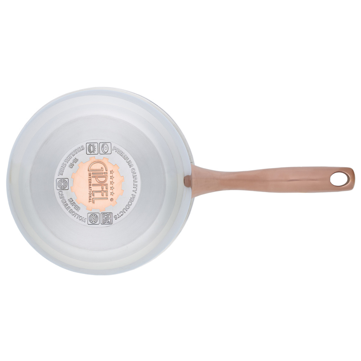 Дизайн посуды разработан с учетом удобства при применении: глянцевая поверхность, плавные линии и изящные ручки с удобным захватом. Все предметы со стальной крышкой. Ручки покрыты отделкой "Розовое золото". Этот изысканный акцент делает Набор посуды из нержавеющей стали Gipfel Absolute 51907 особенным.