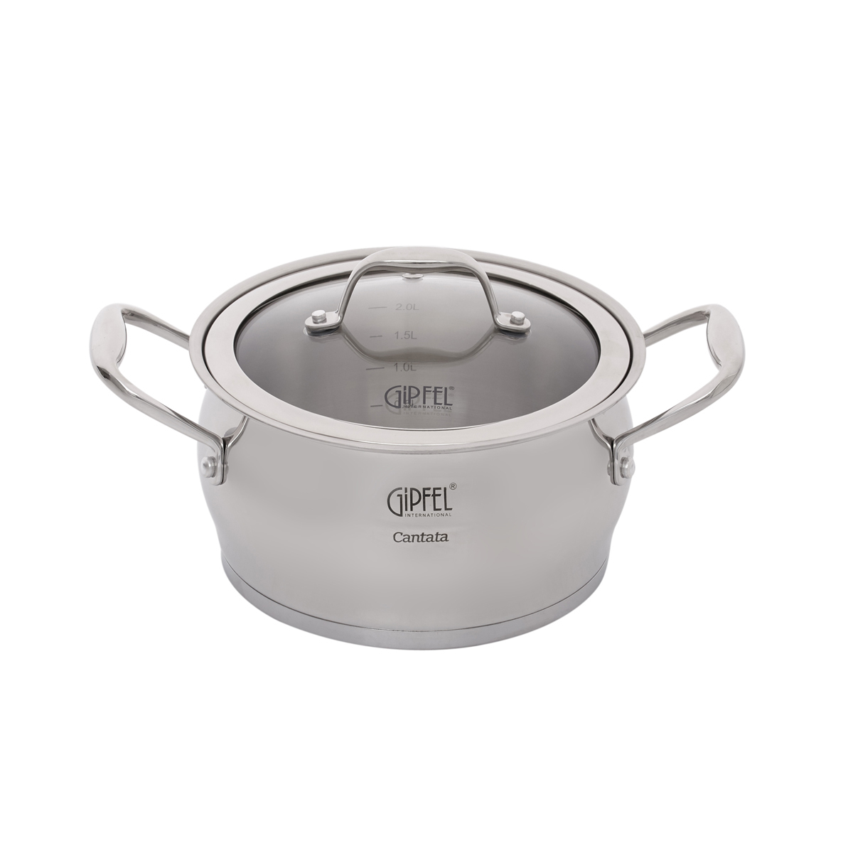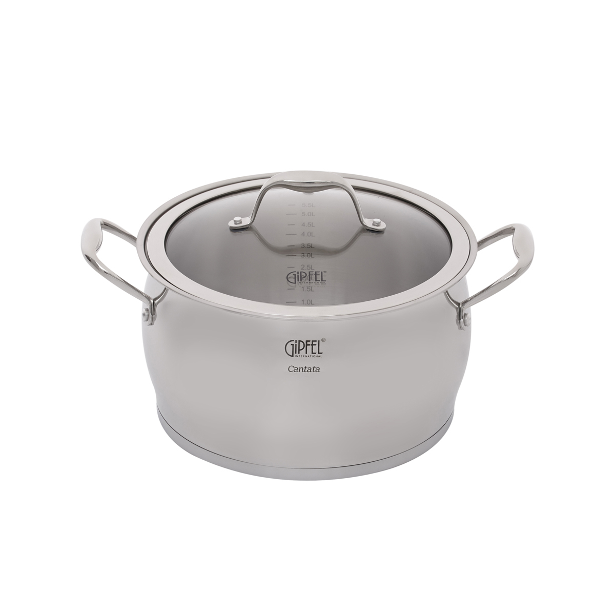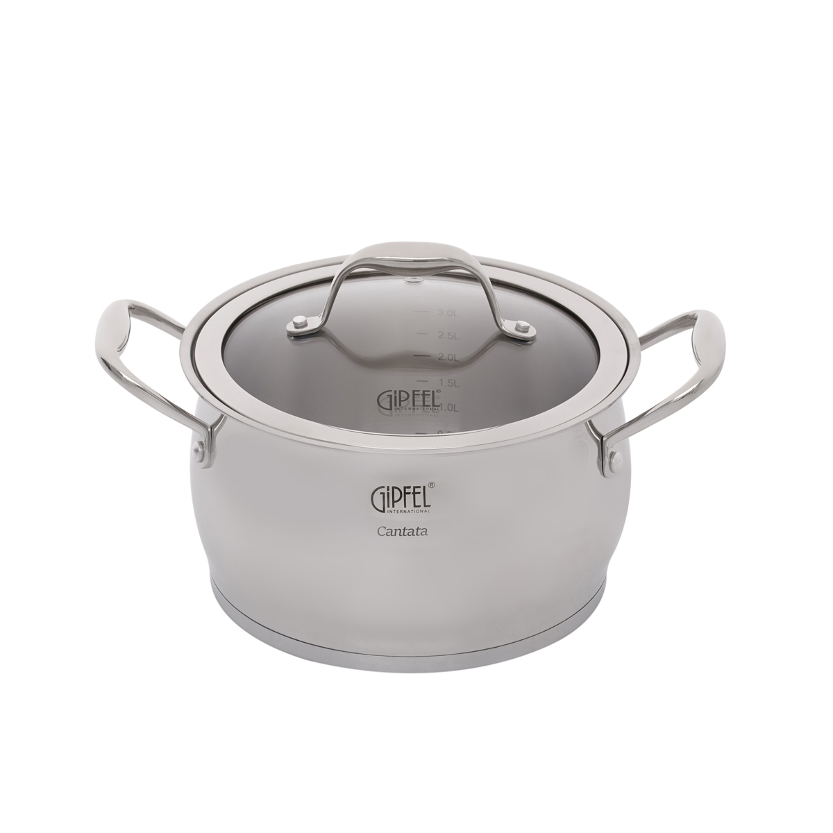 В набор посуды Gipfel Cantata 1538 входят кастрюли на 1,8, 2,8, 3,5 и 6 л, а также ковш объемом 1,8 л.