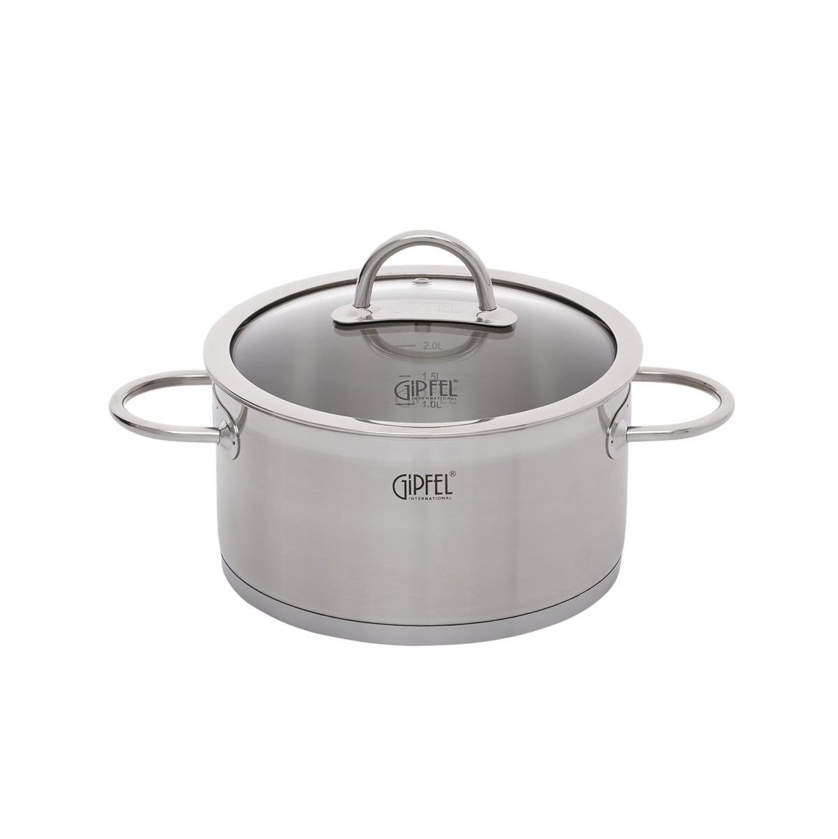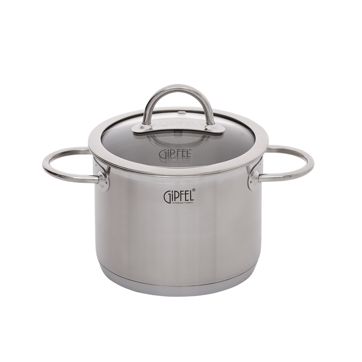 Набор посуды из нержавеющей стали Gipfel Signo 1503: ковш без крышки 16 х 8 см - 1,4 л, кастрюля с крышкой 16 х 12 см - 2,2 л, кастрюля с крышкой 20 х 10,5 см - 2,9 л, кастрюля с крышкой 20 х 14 см - 4 л. Толщина дна 6,4 мм, толщина стенок 0,8 мм. Материал: нержавеющая сталь марки 18/10.