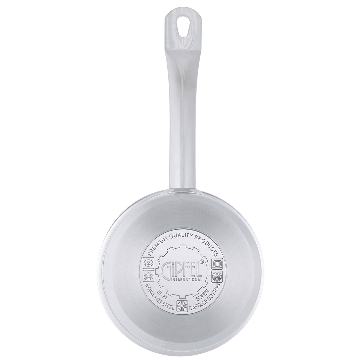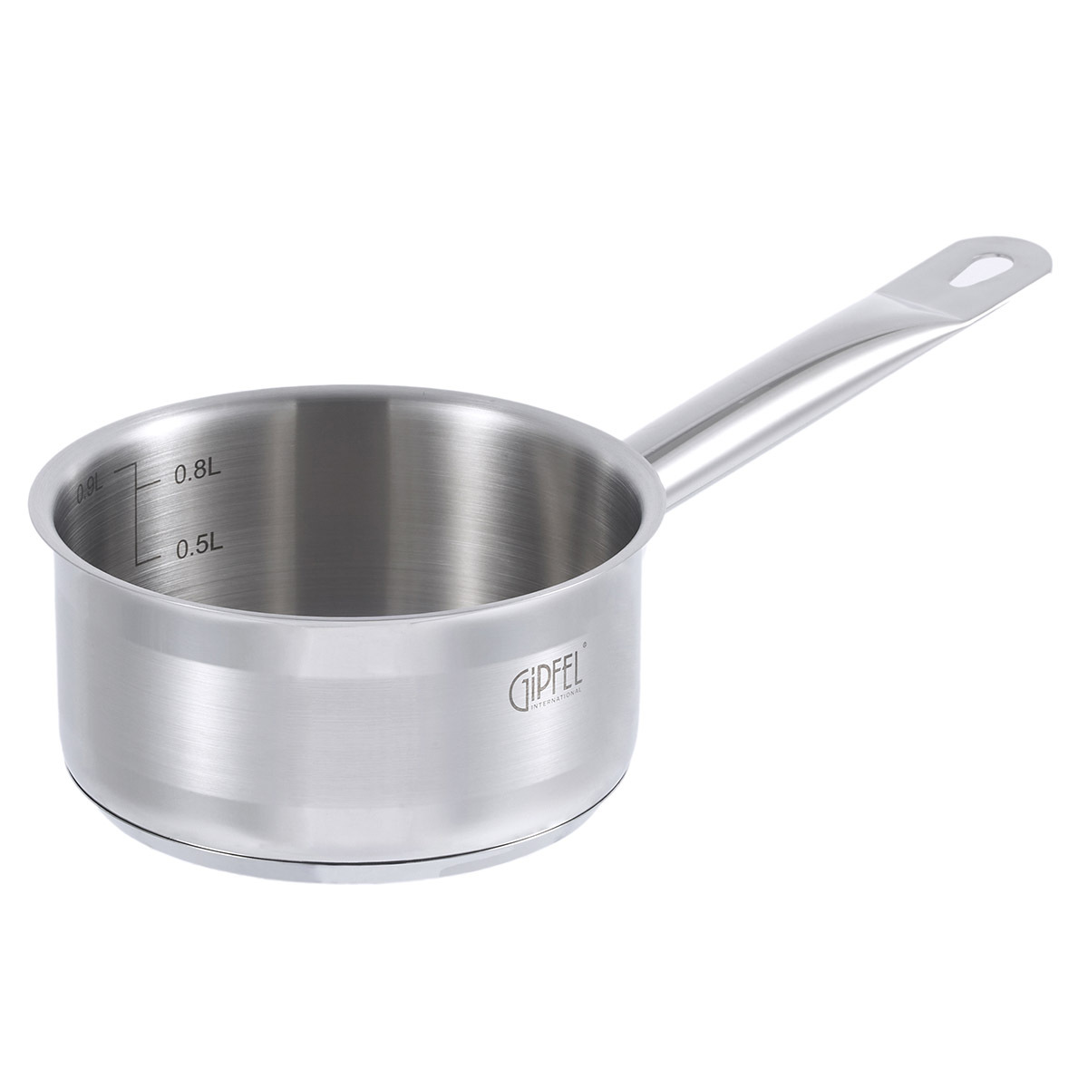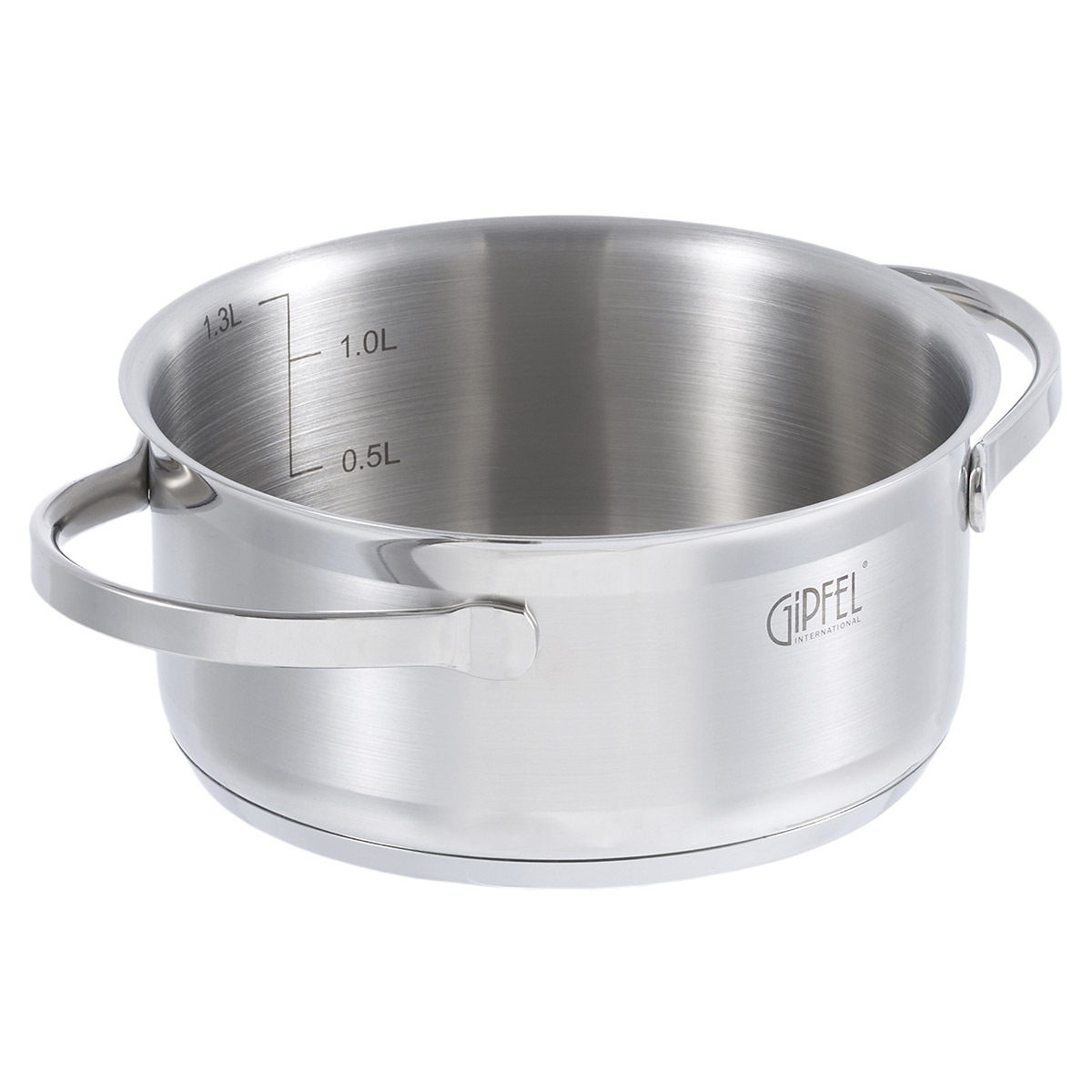 Набор посуды Gipfel Victory 1551 из 8 предметов. В набор посуды входят ковш размером 14х7см и объемом 0,9 л, 3 кастрюли: 16х7,5см/1,3 л, 20х9,5см/2,6 л, 24х11,5см/4,7 л.