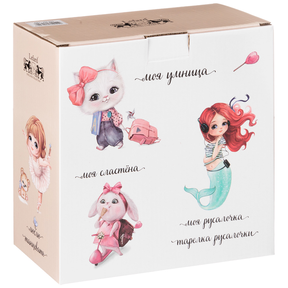 ТМ Lefard рада представить набор детской посуды. Набор детской посуды выполнен из качественного фарфора и декорирован милым и привлекательным рисунком. Привычная еда покажется вкуснее, когда процесс кормления сопровождается игрой и сказками. Красочная посуда - залог хорошего настроения и аппетита вашего малыша! Набор состоит из 3-х предметов: кружка - 220 мл, салатника – 470 мл и тарелки - диаметр 20 см. Подарочная красочная коробка гарантирует вау-эффект при дарении! Вся продукция прошла сертификацию и безопасна для контакта с пищевыми продуктами. Эту посуду можно мыть в посудомоечной машине и подходит для СВЧ.