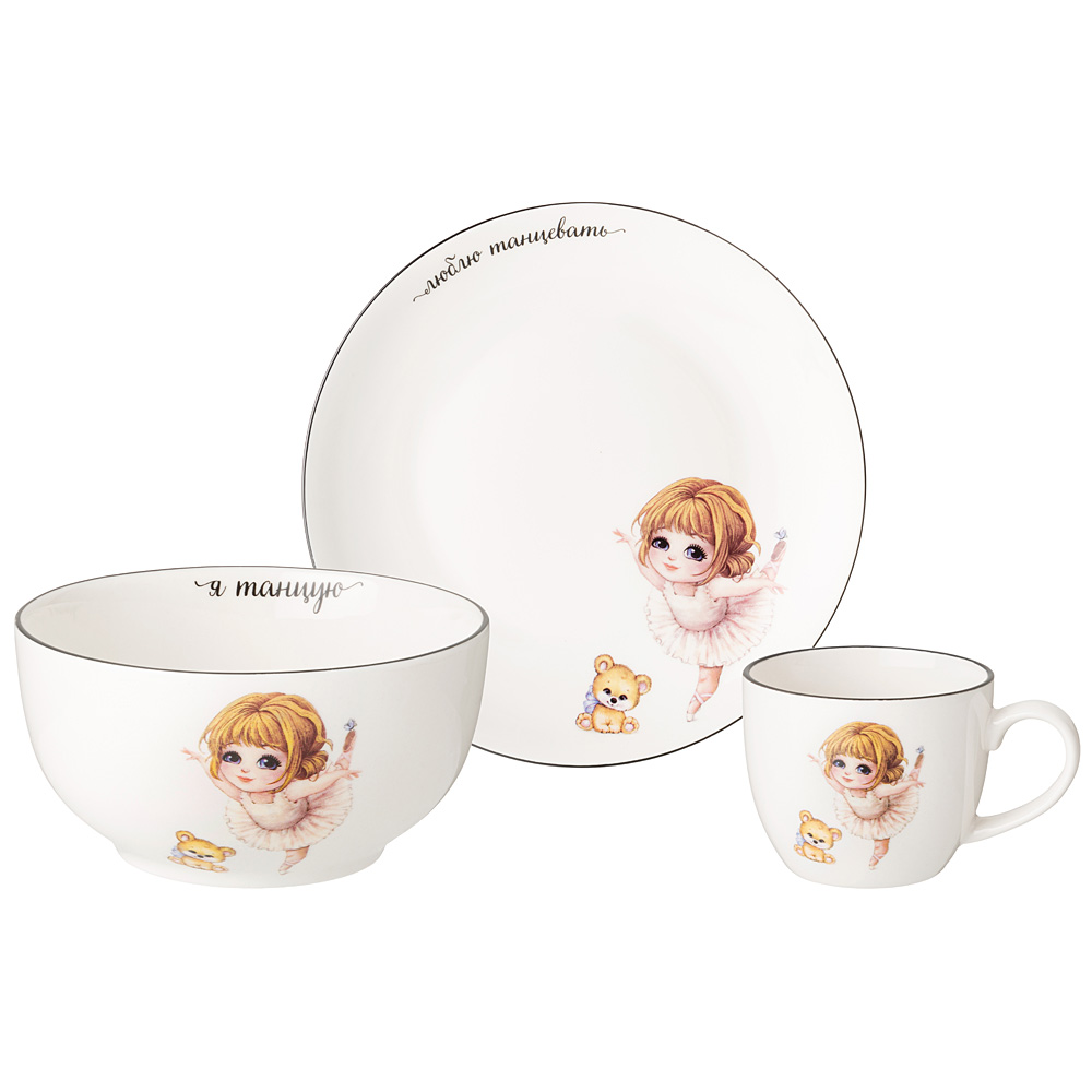 ТМ Lefard рада представить набор детской посуды. Набор детской посуды выполнен из качественного фарфора и декорирован милым и привлекательным рисунком. Привычная еда покажется вкуснее, когда процесс кормления сопровождается игрой и сказками. Красочная посуда - залог хорошего настроения и аппетита вашего малыша! Набор состоит из 3-х предметов: кружка - 220 мл, салатника – 470 мл и тарелки - диаметр 20 см. Подарочная красочная коробка гарантирует вау-эффект при дарении! Вся продукция прошла сертификацию и безопасна для контакта с пищевыми продуктами. Эту посуду можно мыть в посудомоечной машине и подходит для СВЧ.