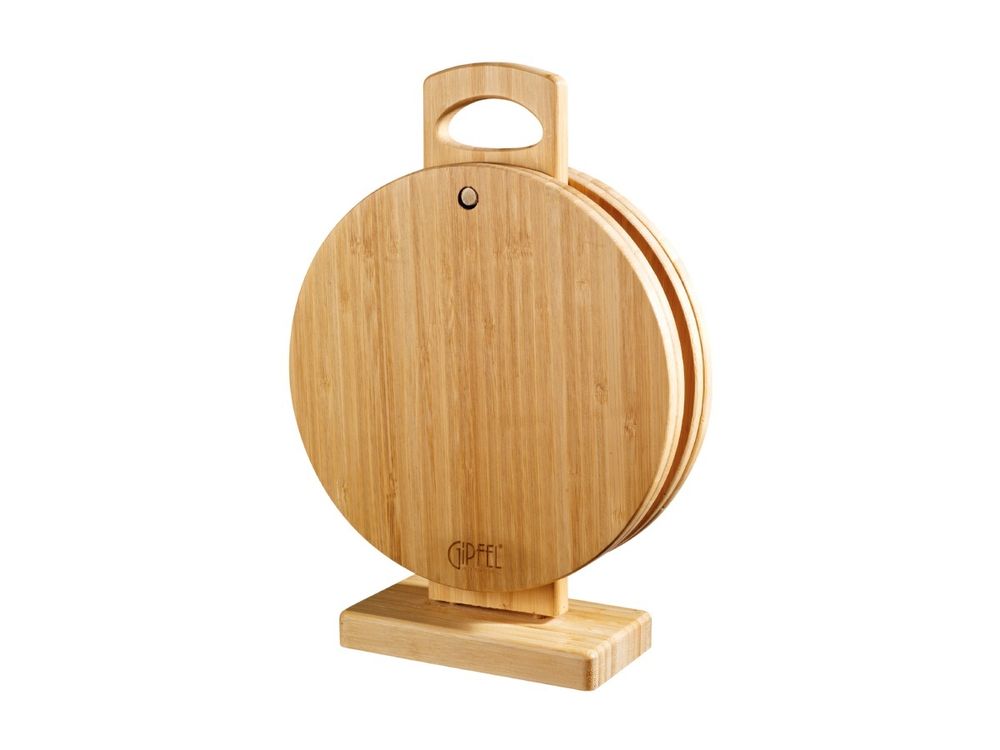 - Набор VERMANTO- 5 предмета- 4 круглые разделочные доски 22х1 см- стойка- Материал:Бамбук +S/S201
