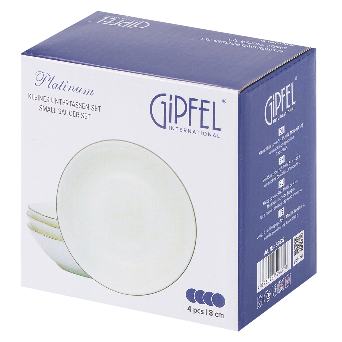 Набор розеток Gipfel Platinum 52637 8 см, 4 предмета. Материал: костяной фарфор. Цвет: белый с серебристым кантом.