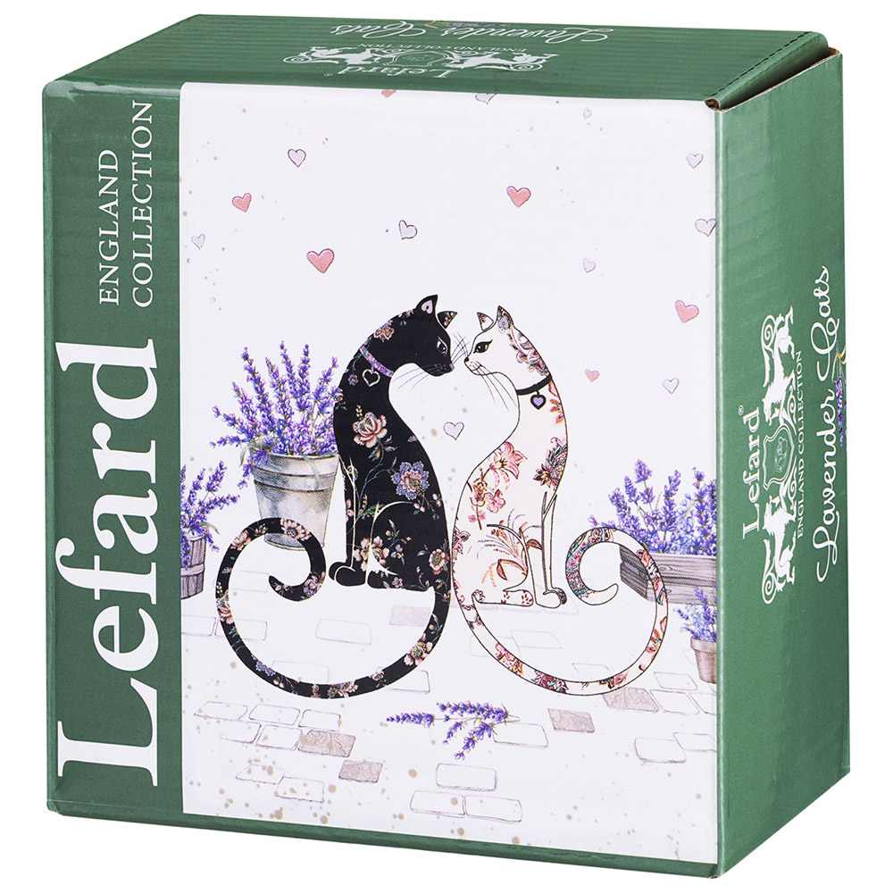 ТM Lefard эксклюзивная посуда серии «Лавандовые коты» создаст атмосферу уюта и поднимет настроение всем и каждому. Предметы украшены трогательными рисунками: влюблённые коты в окружении нежных соцветий лаванды. Упрочненный фарфор, рельефная деколь, блестящая глазурь. Коллекция представлена наборами обеденных, закусочных тарелок, салатниками оптимальных объемов, набором посуды, чайными парами и кружками. Легко сервировать любой стол на завтрак, обед или семейный ужин. Посуда хороша для ежедневного использования. Прекрасный подарок маме, бабушке, сестре, подруге. Красочная фирменная упаковка. Вся продукция сертифицирована и безопасна для контакта с пищевыми продуктами. Легка в уходе, не боится мытья в посудомоечной машине, использования в микроволновой печи.