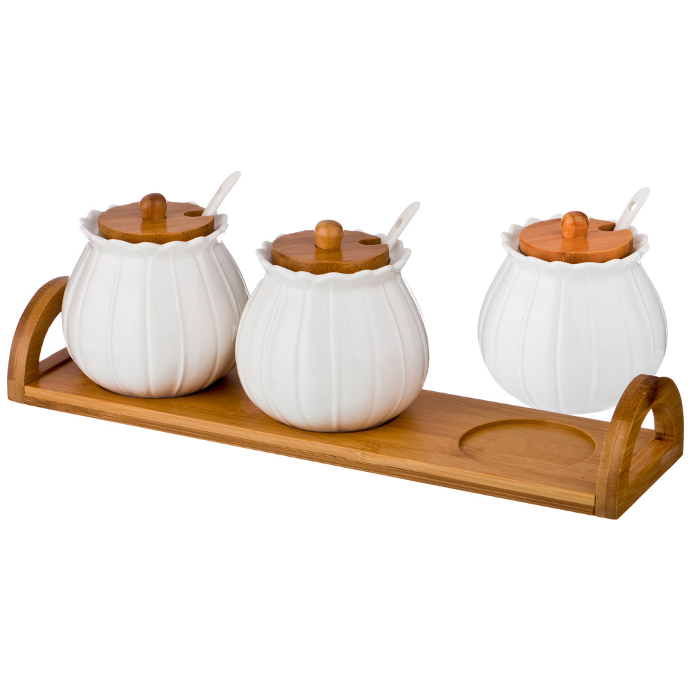 Бамбуковые элементы имеют приятную на ощупь текстуру и являются гармоничным дополнением к белому фарфору. Бамбук с белым – классика для Вашей кухни!