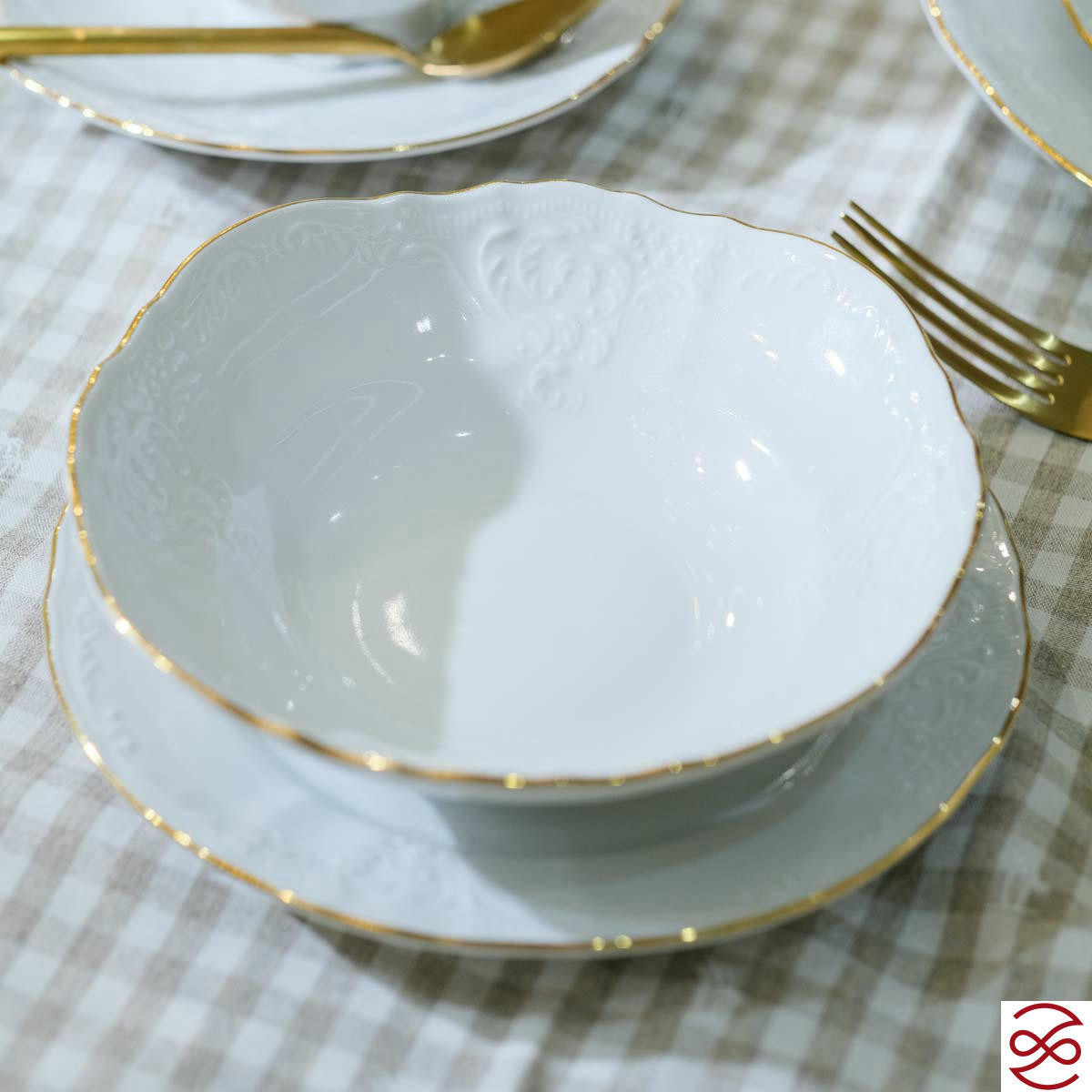 Салат – король любого застолья! А королю – королевское облачение. Изысканная сдержанность и неповторимый шарм представляют собой изделия из коллекции Бернадотт Белый узор. Великолепно в качестве подарка.