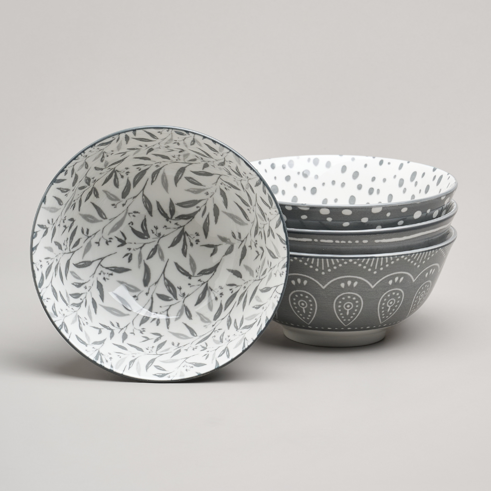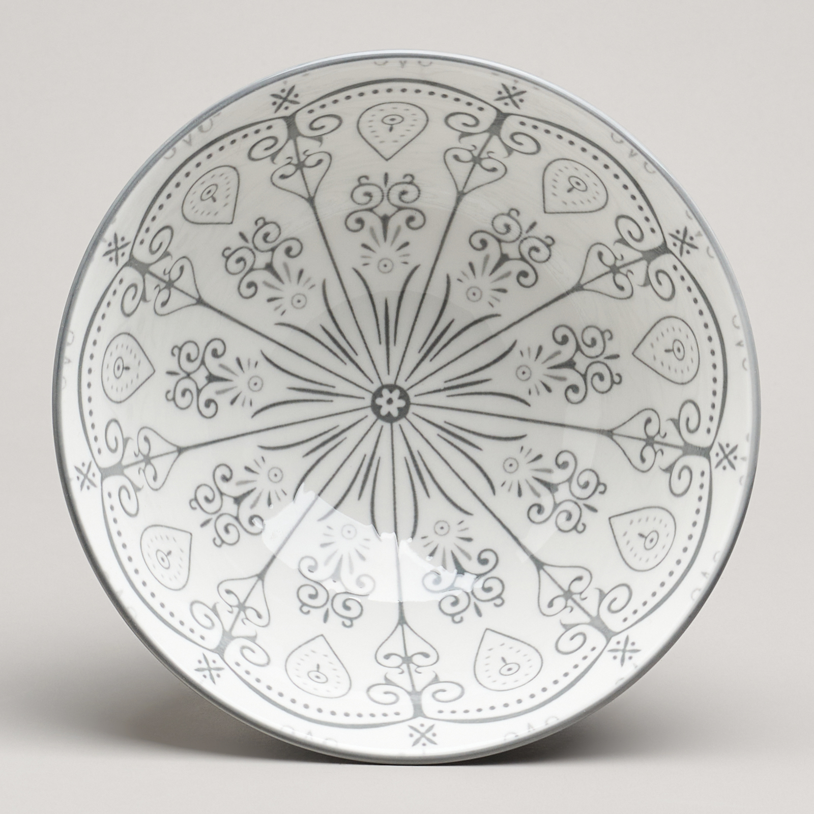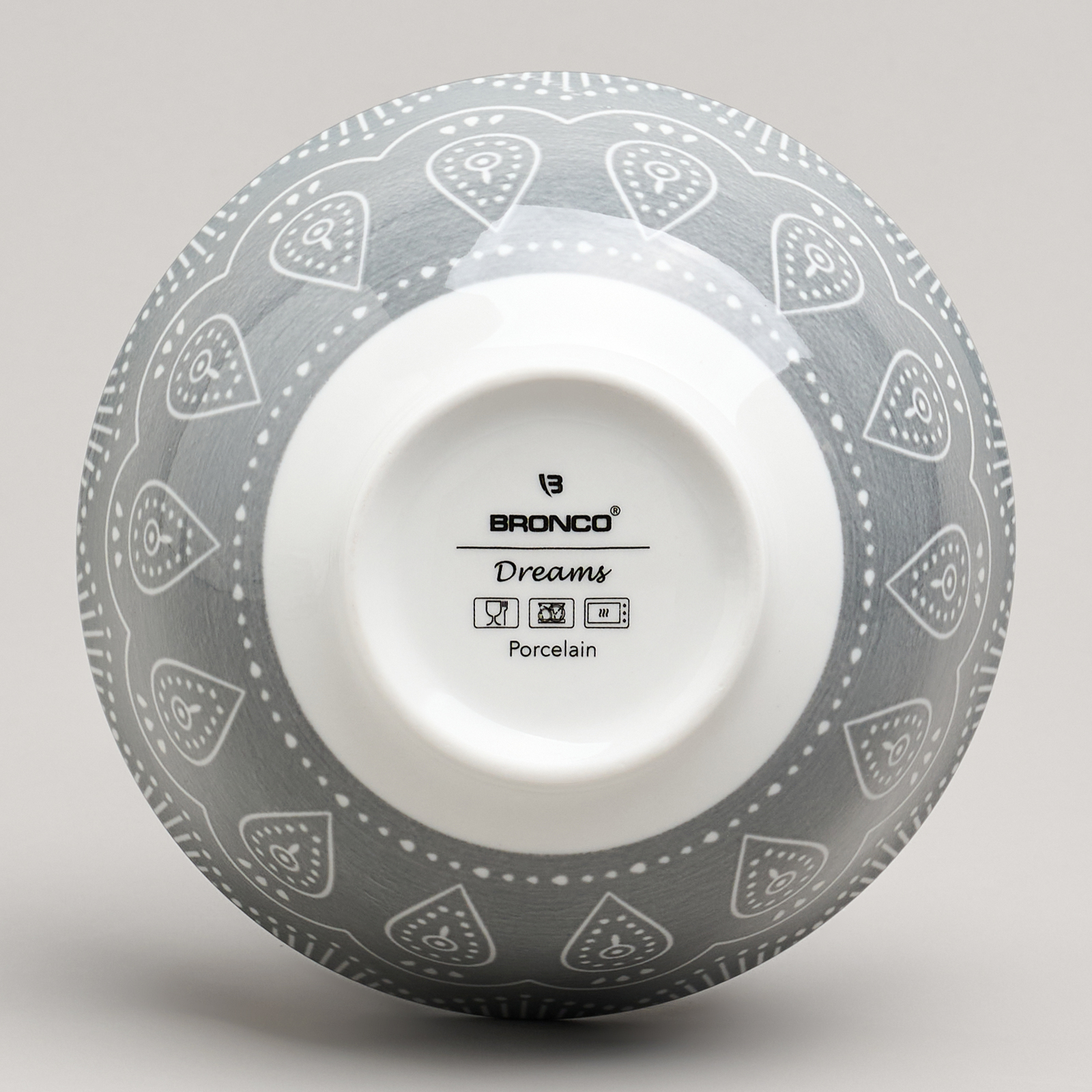 ТМ BRONCO «DREAMS» - идеальное решение для тех, кто ценит качество, стиль и практичность в сервировке. Нежные оттенки серого, орнамент с восточными мотивами, геометрический узор и цветочные мотивы добавят энергии и сил на целый день. Коллекция выполнена из качественного фарфора, покрыта толстой прозрачной глазурью, рекомендована для повседневного использования, хорошее сочетание цены и качества. Посуда прошла сертификацию и безопасна для контакта с пищевыми продуктами, легко моется в посудомоечной машине и подходит для использования в микроволновой печи.