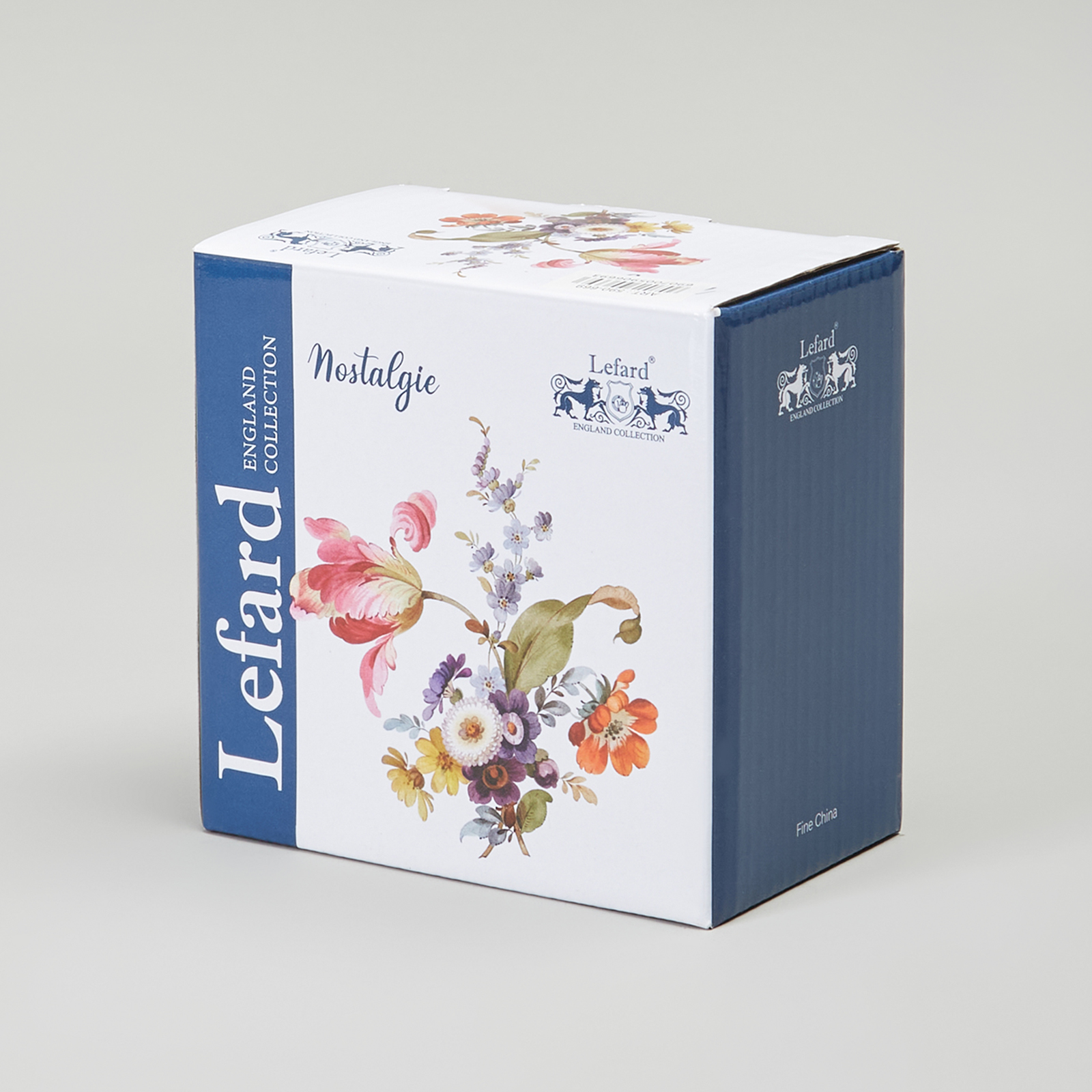 ТМ LEFARD «NOSTALGIE» - это коллекция по мотивам известного декора, появившегося в середине 18 века, в виде цветов и растений, собранных в прекрасные букеты в стиле рококо. Узор, появившийся впервые на изделиях Мейсенской мануфактуры в Германии, до сих пор путешествует по фарфору разных стран. Его можно встретить на немецких сервизах, чешском фарфоре. Дизайнеры LEFARD вдохнули еще одну жизнь в эту знаменитую тему, добавили краски кобальта и золотые элементы. Качественный тонкостенный фарфор, уникальные формы, неизменная классика. Это прекрасный подарок. Посуда прошла сертификацию, безопасна для контакта с пищевыми продуктами. Использовать только мягкие моющие средства. Нельзя мыть в посудомоечной машине, ставить в микроволновую печь.