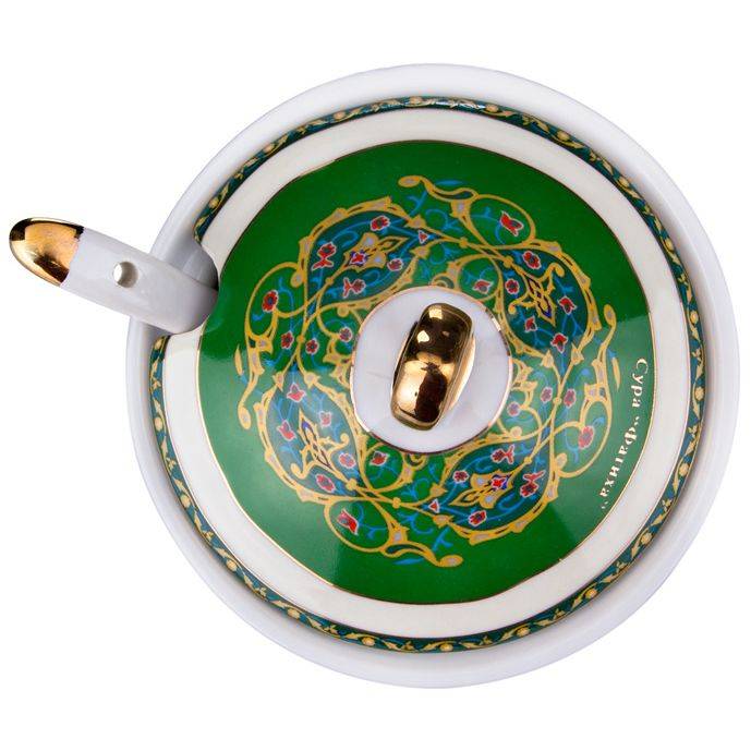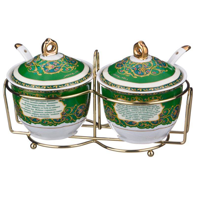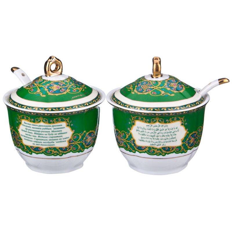 ТМ LEFARD представляет эксклюзивную коллекцию посуды «Суры из Корана». Кувшины, чайники, сахарницы, кружки, чайные пары, декоративные тарелки и другие предметы выполнены из высококачественного тонкостенного фарфора. Восточный орнамент, небольшие отрывки Сур из Корана на классическом арабском и русском языках с отделкой золотом украшают изделия. Это прекрасный мусульманский подарок, всегда нужный и теплый. Относитесь к нему бережно и с почтением. Посуду коллекции можно использовать как в повседневной жизни, так и на торжественном приеме. Не рекомендуется мыть в посудомоечной машине и использовать в микроволновой печи.