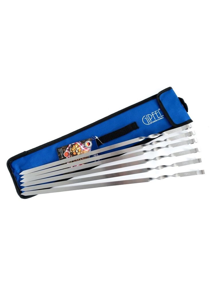 Набор шампуров Gipfel 5944. В наборе 6 шампуров в нейлоновом чехле с ручкой. Шампуры сделаны из нержавеющей стали и имеют длину 60 см.