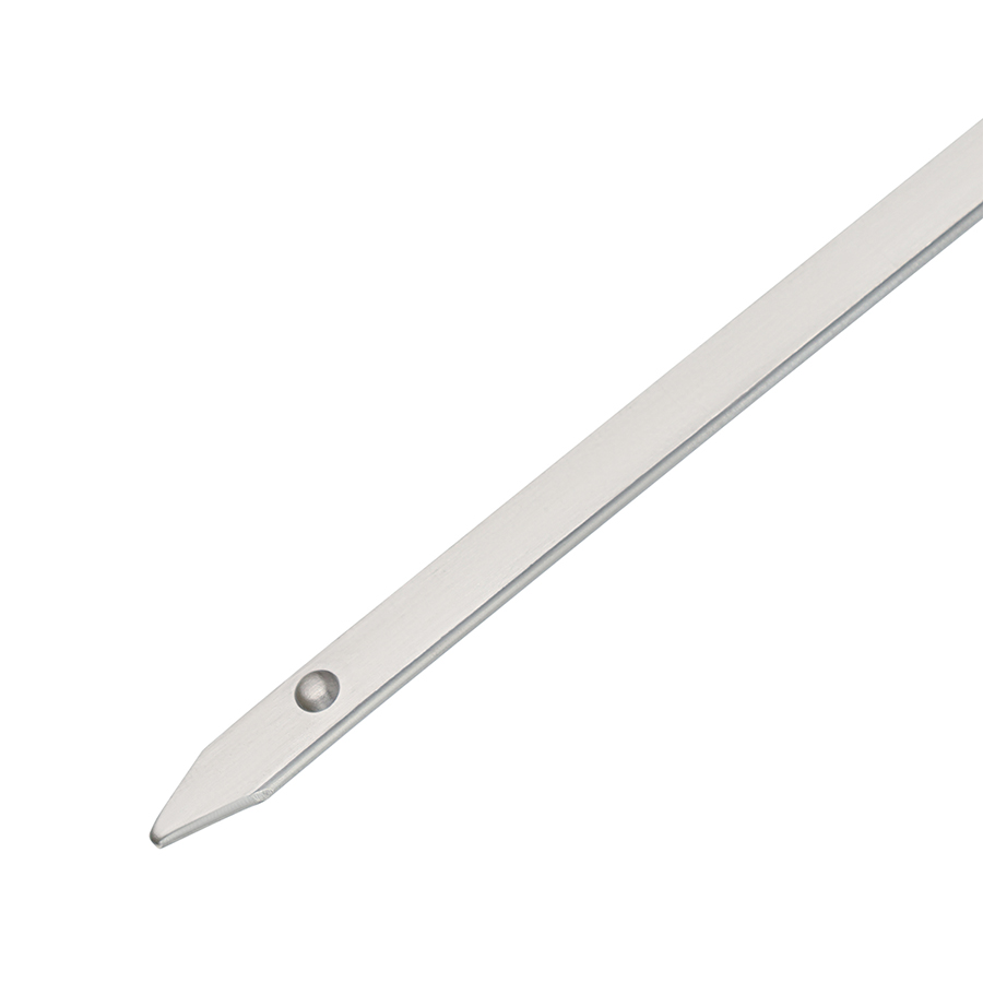 Материал: нержавеющая сталь 430. Размеры: 41,8x0,6x1,8 см. Толщина шампура: 0,2 см. Длина без ручки: 31,5 см.