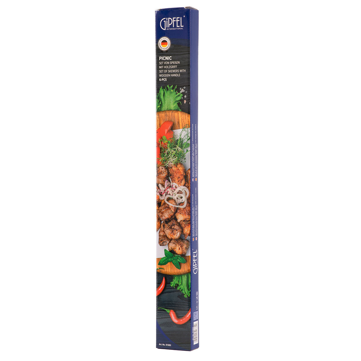 Набор шампуров Gipfel Picnic 51382. В наборе 6 шампуров с деревянной ручкой. Инструменты сделаны из нержавеющей стали и имеют длину 60 см.