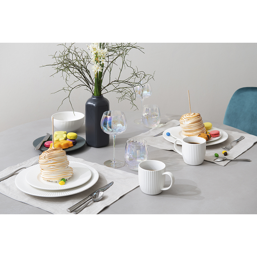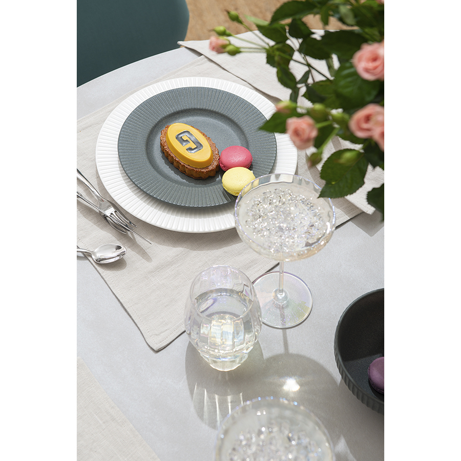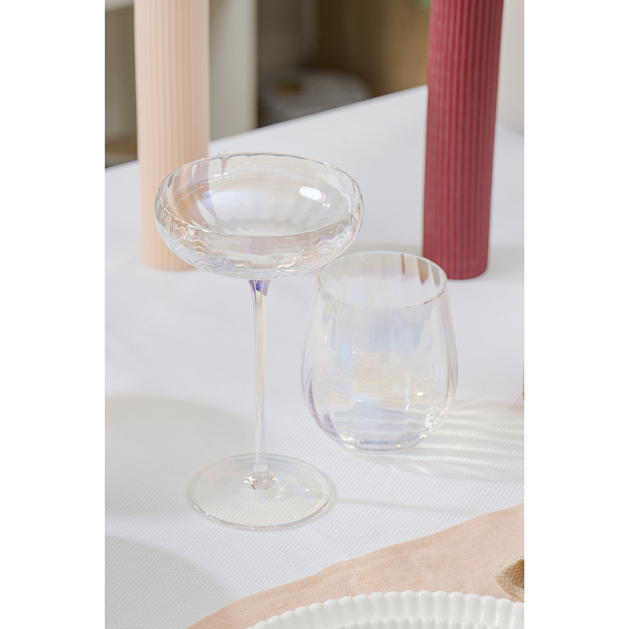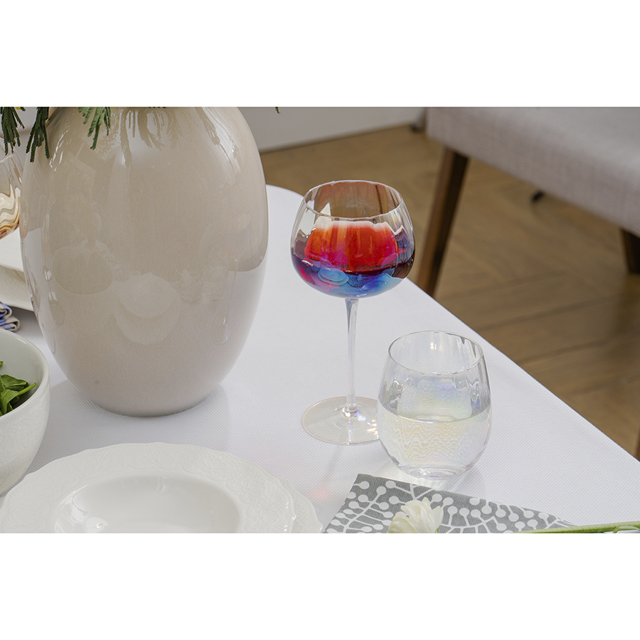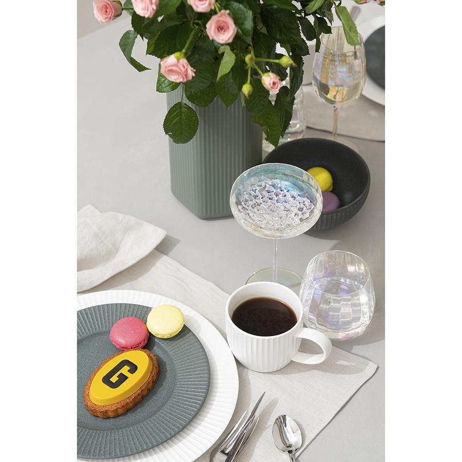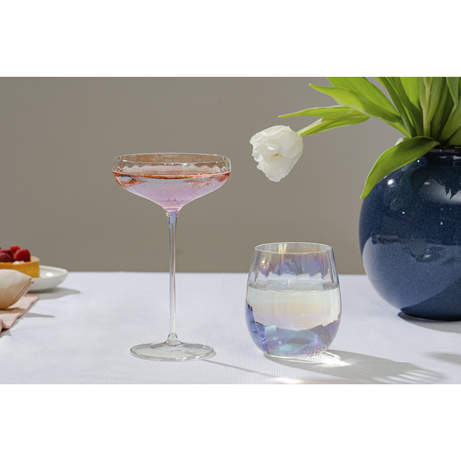 Линейка Gemma Opal привлекает лаконичным дизайном и необычным цветовым решением в виде радужных переливов. Вся посуда выполнена вручную из выдувного стекла. Такой способ производства позволяет играть с линиями и изгибами, создавая уникальные и неповторимые продукты. Изделия получаются более прочными, но при этом тоньше и прозрачнее аналогов из обычного стекла.