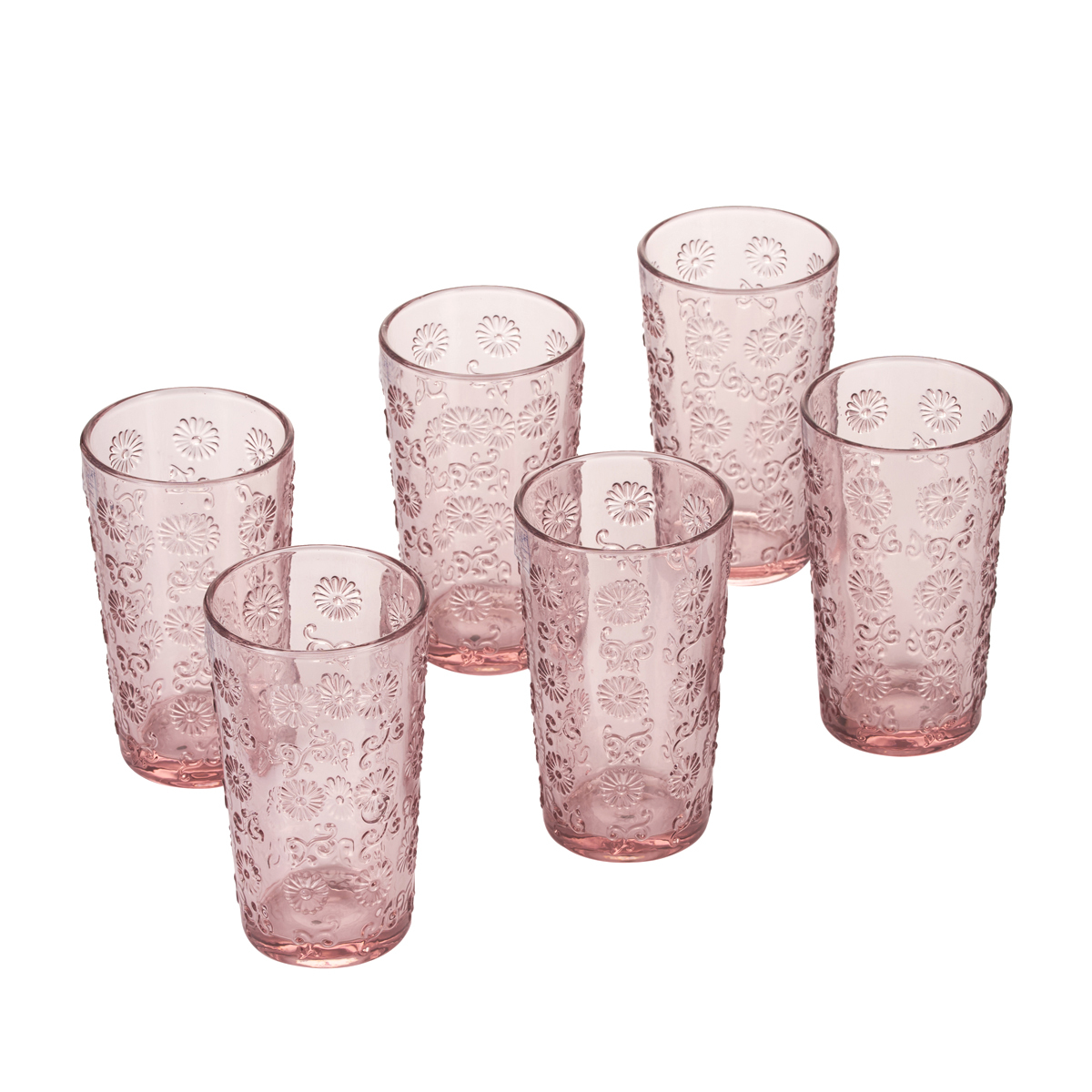 Набор стаканов для напитков GIPFEL PINK 41199. В наборе 6 стаканов из стекла. Стаканы розового цвета украшены рельефным рисунком. Объем бокалов 400 мл. Упакованы в коробку.