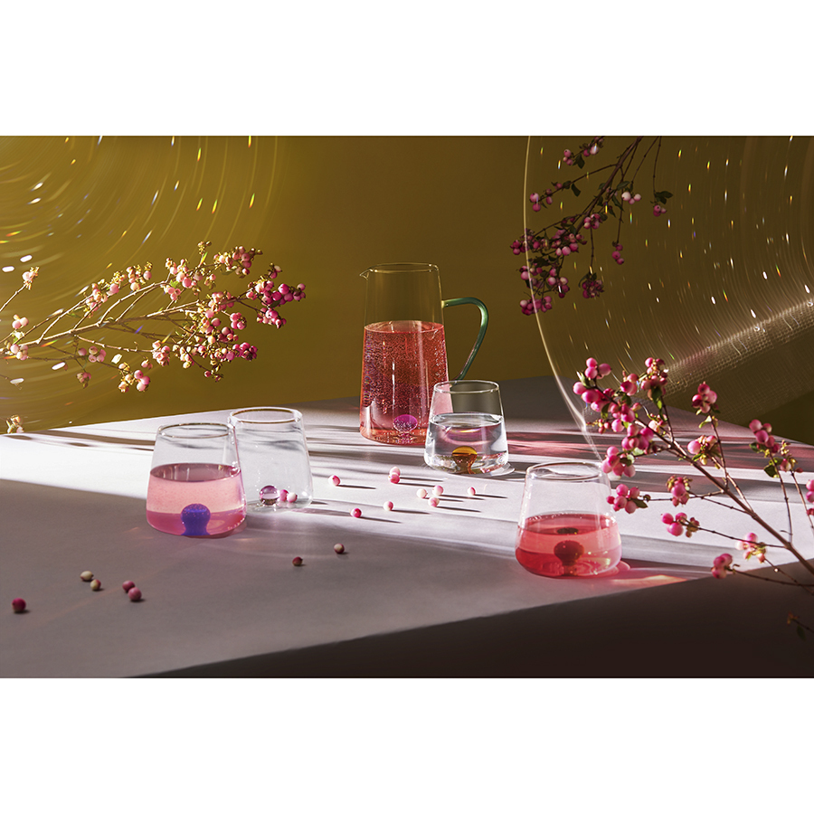Набор стаканов Orb – прекрасный способ сделать сервировку особенной. Дизайн с яркими акцентами в виде цветных шариков привлекает внимание и эффектно выделяет предметы из данной коллекции на фоне других.