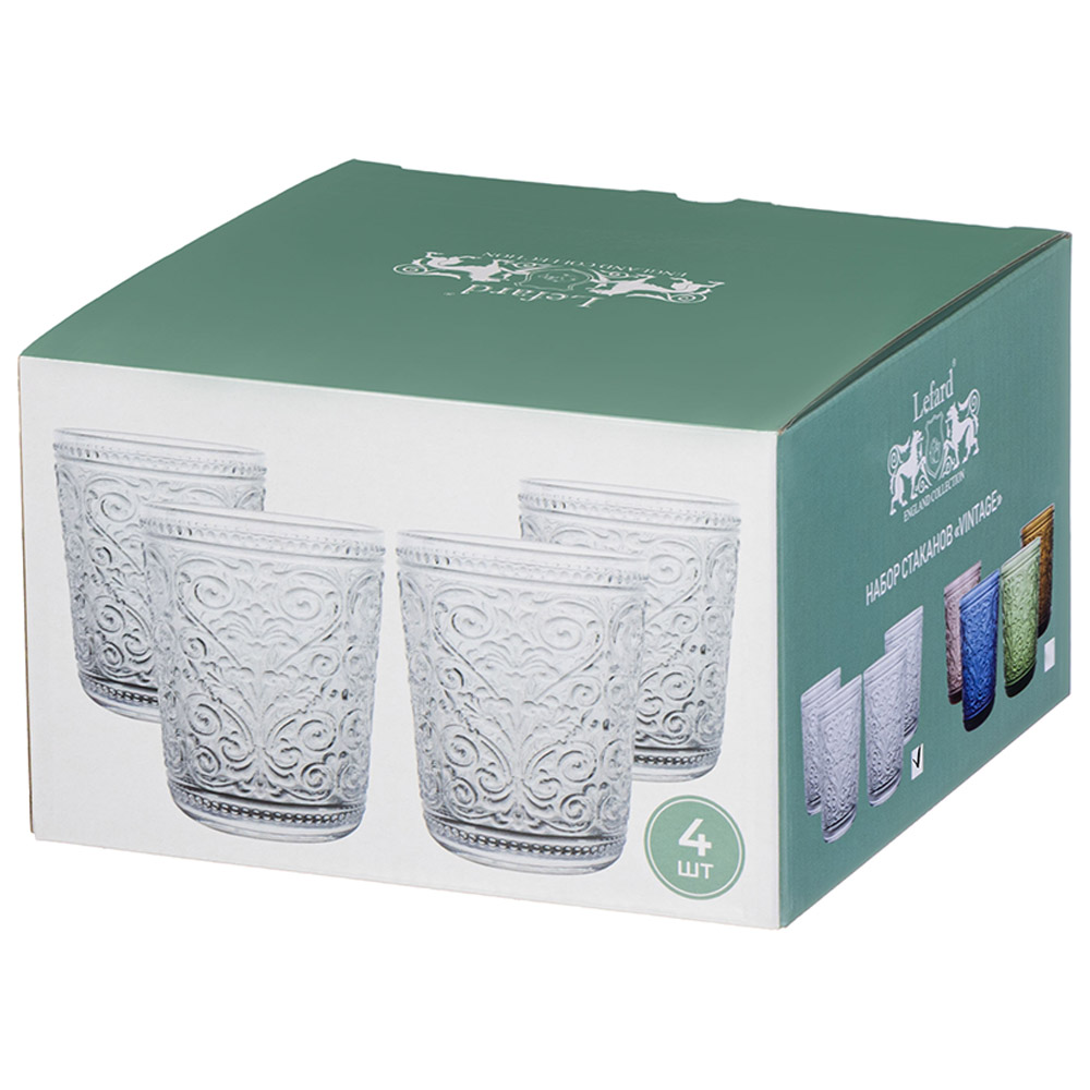 Ассорти из 4 цветов: Зелёный, синий, янтарный и розовый — каждый оттенок словно переносит вас в разные уголки старинного европейского города. Эти яркие акценты оживят любой стол, добавив ему игривости и тепла.